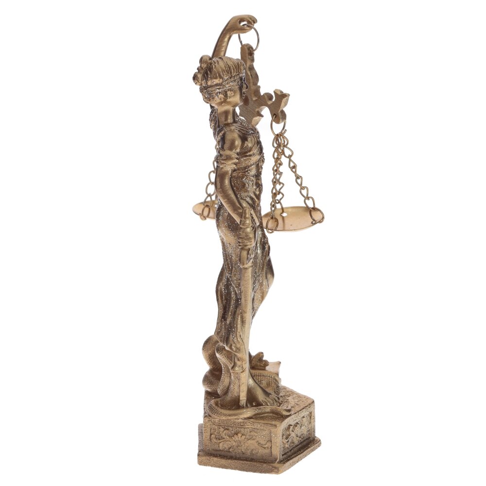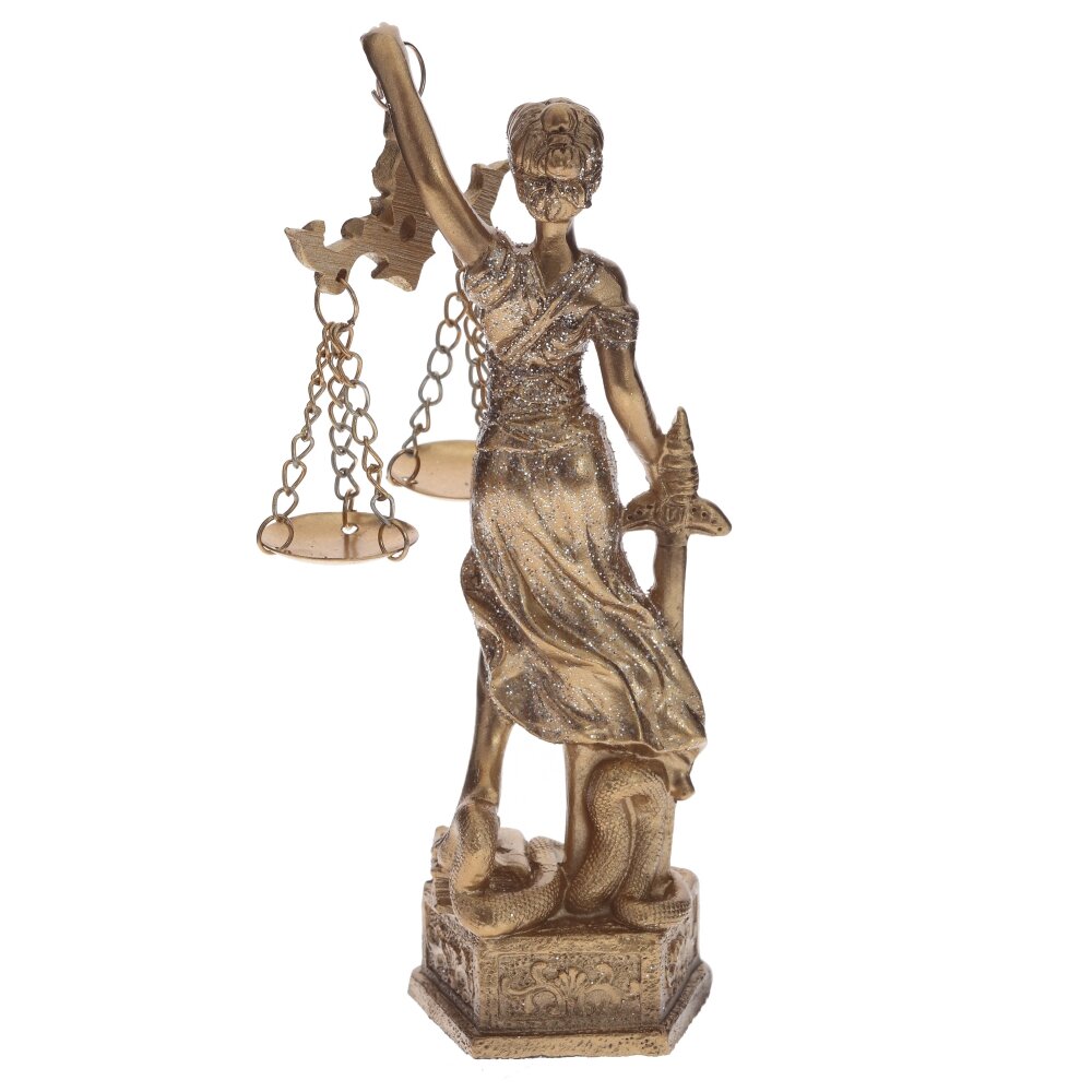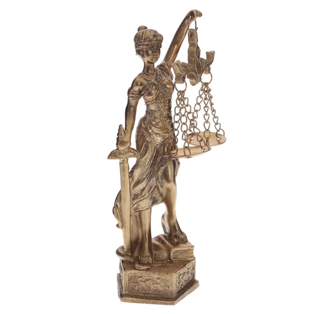 Декоративная фигурка Фемиды представляет собой изделие, которое воплощает символическую силу и красоту богини правосудия. Фигурка выполнена из полимерного материала, окрашена в золотой цвет, что придает ей блеск и роскошный вид. Она изображена стоящей на подставке, держащей в одной руке весы и в другой руке меч. Ее поза выражает силу и уверенность. Фигурка идеально подходит для оформления офиса, кабинета или библиотеки. Она станет прекрасным подарком для юристов или просто для тех, кто ценит красоту и символическую значимость этой богини.