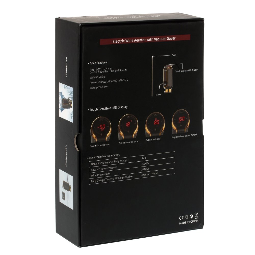 Срок хранения открытой бутылки вина может быть продлен до 10 дней. Полное время зарядки через USB кабель примерно 3 часа