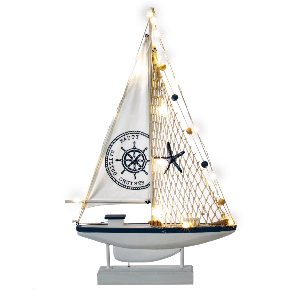 Окунитесь в мир приключений с этим восхитительным декоративным корабликом. Этот аксессуар добавит нотку романтики в ваш интерьер. Кораблик имеет корпус из дерева, паруса из ткани, подсветку. Его небольшие размеры делают его идеальным для размещения на полке, столике или даже на рабочем столе, чтобы вдохновлять вас на новые приключения. Работает от двух батареек АА (не прилагаются).