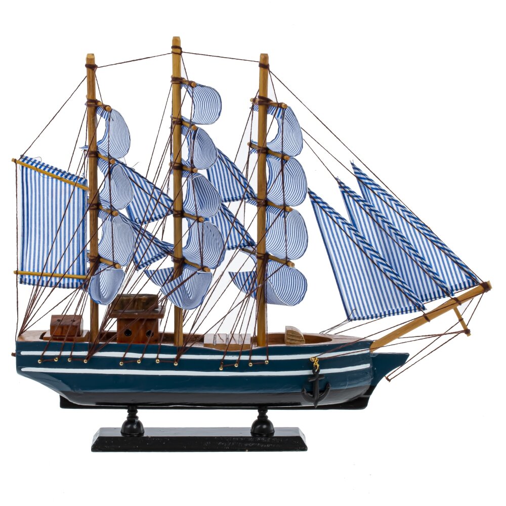 Модель деревянного парусника состоит из множества мелких подробных деталей. Корабль устойчиво стоит на горизонтальной поверхности благодаря широкой деревянной подставке. Это изделие прекрасно дополнит любое помещение - будь то гостиная, кабинет или детская комната. Он станет не только ярким акцентом в интерьере, но и символом приключений, свободы и морских путешествий.