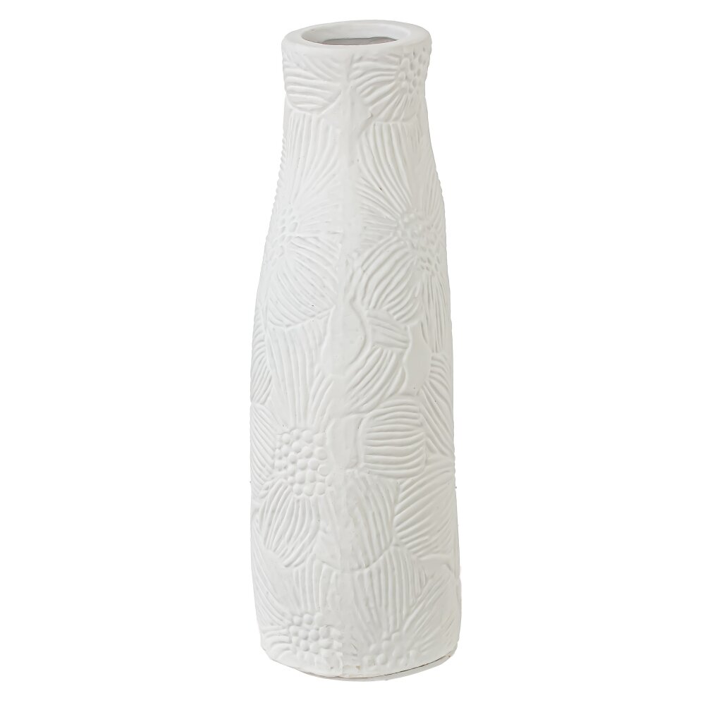 Эта впечатляющая ваза объемом 600 мл станет настоящим произведением искусства в вашем интерьере. Изготовленная из керамики, она отличается не только прочностью, но и оригинальной формой, которая сразу привлекает внимание. Белый цвет вазы создает чистый и нежный фон для любого цветочного оформления. Рельефная поверхность с изысканным цветочным рисунком добавляет текстуры и глубины, превращая вазу в стильный акцент в любом пространстве. Благодаря своим размерам она идеально подходит для небольших букетов, а также для создания эффектных композиций, которые наполнят ваш дом уютом и теплом. Эта ваза станет отличным дополнением для столов, полок или подоконников, позволяя вам выразить свою индивидуальность и любовь к красоте природы. Она прекрасно впишется как в классические, так и в современные интерьеры. Позвольте этой вазе добавить элегантность в ваш дом и создать атмосферу, полную гармонии и вдохновения. Диаметр горловины: 3 см.