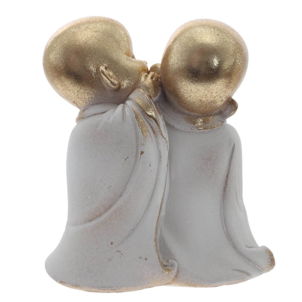 Декоративная фигурка "Будды" выполнена из качественных полимерных материалов, которые придают изделию прочность и долговечность. Изящная композиция изображает двух маленьких монахов в трогательном моменте общения: один шепчет что-то другому на ухо, а второй застенчиво прикрывает рот рукой, словно смеется. Благородное сочетание серого цвета с золотыми акцентами придает изделию элегантность и утонченность. Эта фигурка станет отличным элементом декора для дома, офиса или зоны для медитации, привнося в пространство атмосферу спокойствия, гармонии и радости. Также это прекрасный подарок для любителей восточной философии и искусства, символизирующий доброту, мудрость и счастье. Компактные размеры изделия позволяют разместить его на рабочем столе, полке или комоде, создавая уютную и вдохновляющую обстановку.