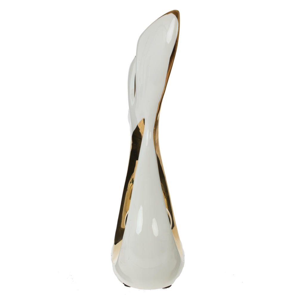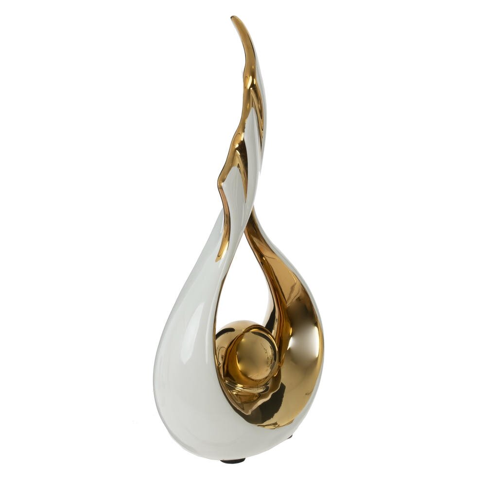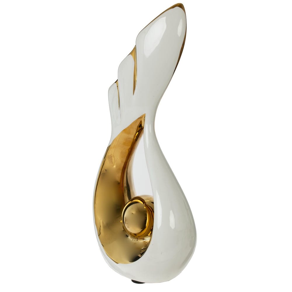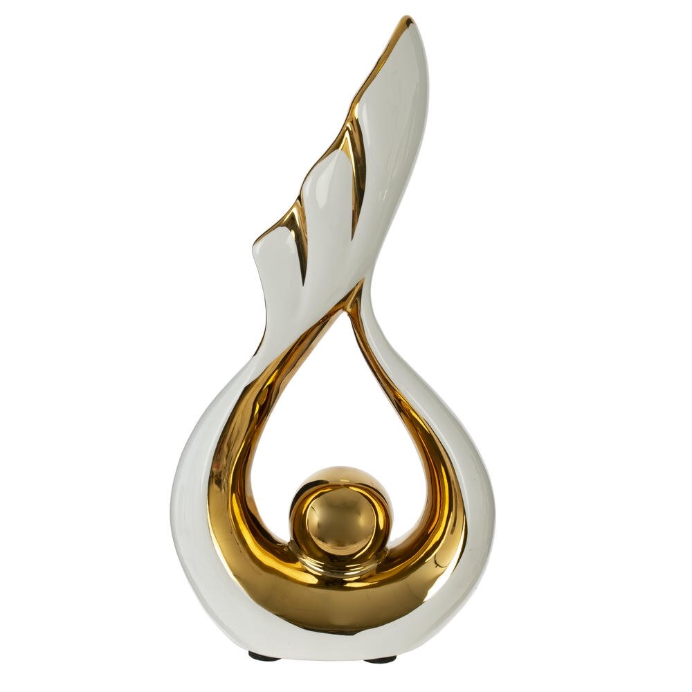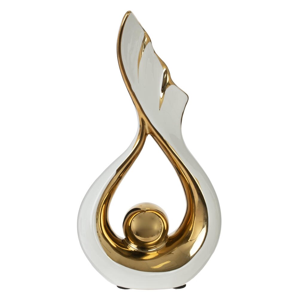 Декоративная фарфоровая фигурка в современном абстрактном стиле станет ярким акцентом интерьера. Изящный силуэт в форме плавного контура с «пламенем» наверху и золотистой сферой внутри символизирует гармонию и движение. Глянцевое белое покрытие в сочетании с зеркальным золотом придает изделию статусный, нарядный вид. Фигурка идеально подойдет для оформления гостиной, спальни, кабинета или приемной, уместна на комоде, полке, каминной или журнальном столике. Станет оригинальным подарком для ценителей стильного декора и легко впишется как в классический, так и в современный интерьер.