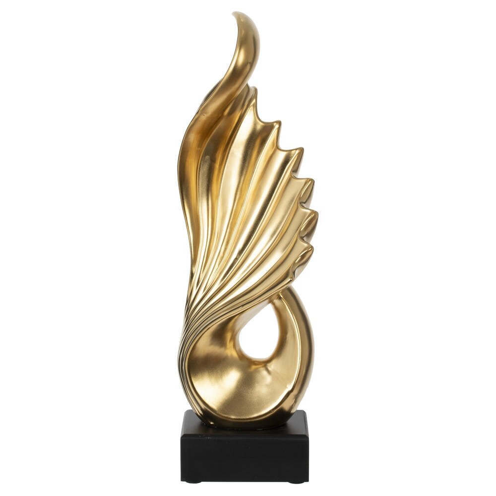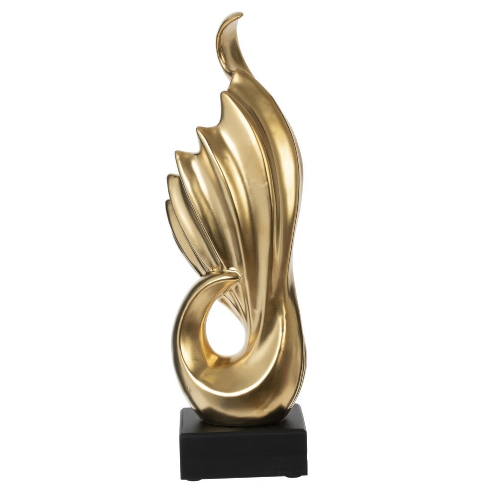 Декоративная фигурка в виде абстрактного золотого крыла станет эффектным акцентом в любом современном интерьере. Плавные изгибы, динамичные линии и сквозное отверстие в основании создают ощущение движения и легкости, а глянцевое золото красиво отражает свет и придает композиции роскошный вид. Фигурка установлена на лаконичной черной подставке, за счет чего выглядит особенно выразительно на полке, каминной полке, журнальном столике или в зоне ресепшн. Подойдет для оформления гостиной, кабинета, спальни или офиса, а также станет стильным и запоминающимся подарком ценителям современного дизайна и элегантного декора.