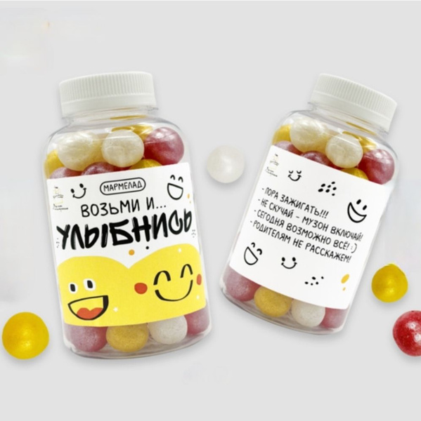 Мармелад в банке «Возьми и улыбнись» — яркий и вкусный подарок, который поднимает настроение и дарит радость с первой ложки.