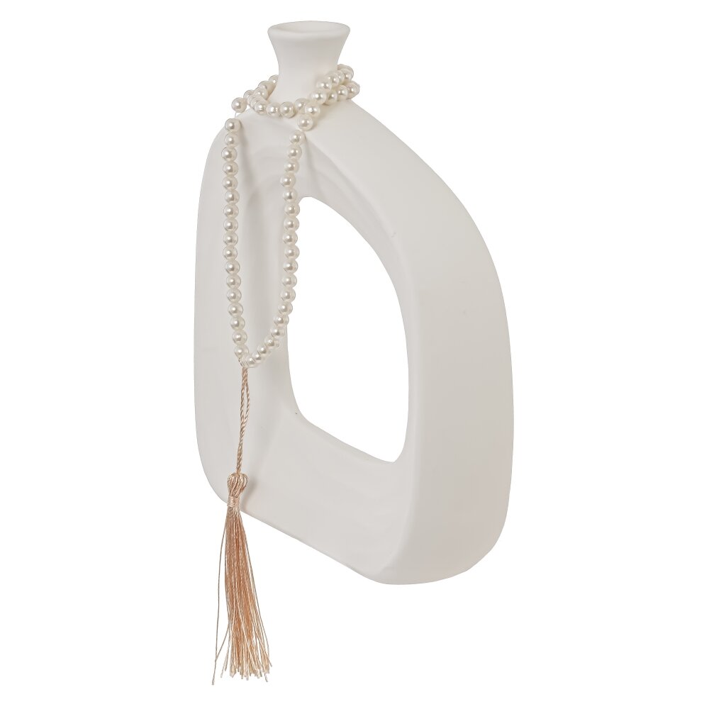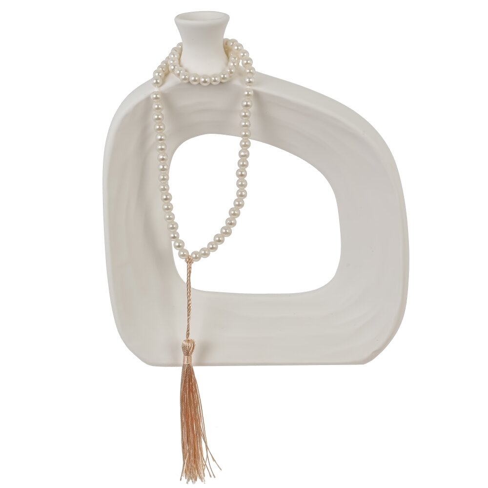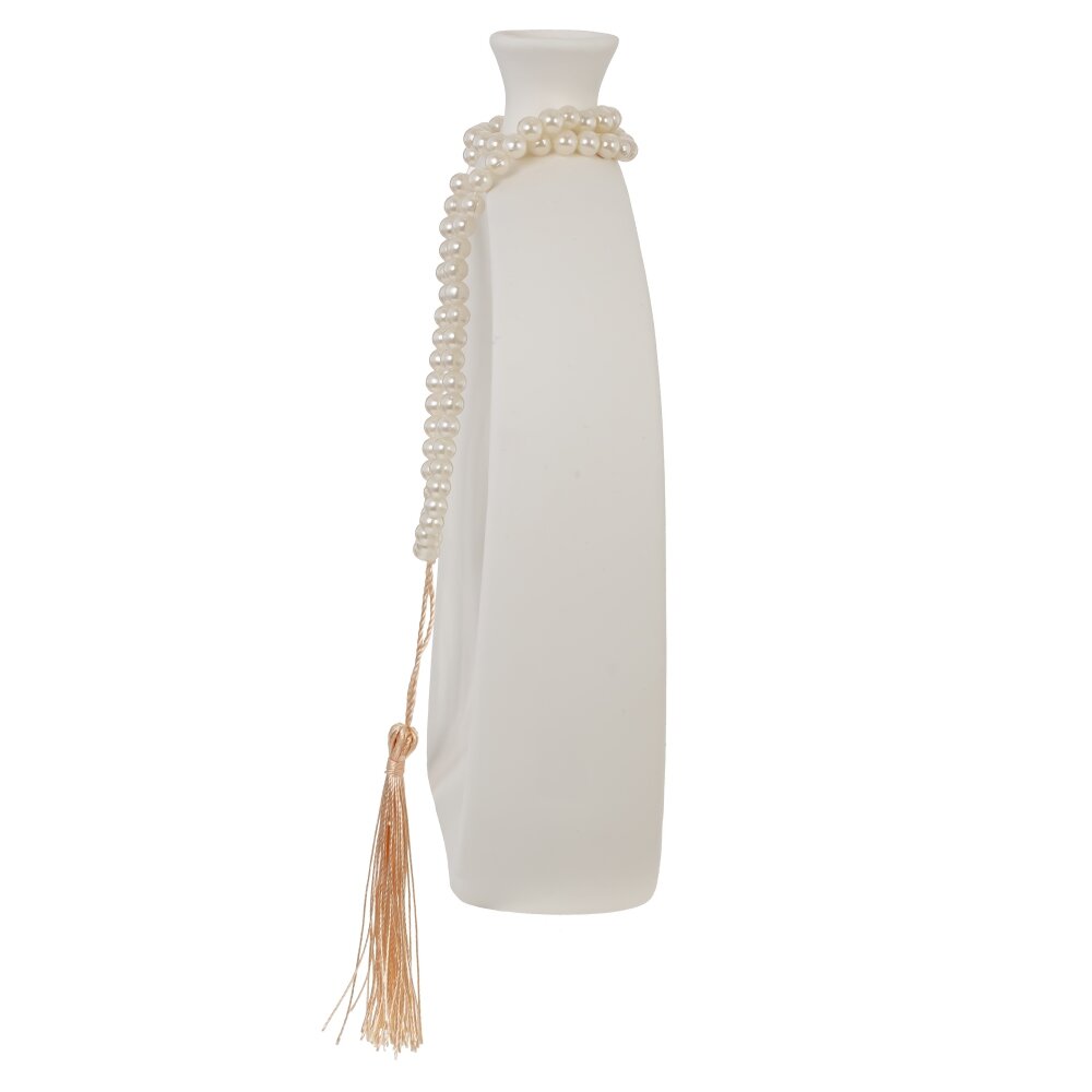 Эта изысканная ваза объемом 250 мл станет уникальным акцентом в вашем интерьере. Изготовленная из качественной керамики, она отличается не только прочностью, но и оригинальной формой, которая сразу же притягивает внимание. Белый цвет вазы подчеркивает ее элегантность, в то время как декоративное ожерелье из белых бус с кисточкой придает ей индивидуальность и шарм. Такой элемент декора идеально сочетается с живыми цветами или сухими композициями, добавляя нотку утонченности и стиля. Эта ваза будет замечательно смотреться на столе, полке или подоконнике, добавляя в ваше пространство светлые и воздушные акценты. Она подходит для создания романтической атмосферы или как подарок для дорогих вам людей, любящих красивый и уникальный декор. Позвольте этой вазе украсить ваш дом, наполнить его теплотой и изысканностью. Размер горловины: 1.5*1.5 см.