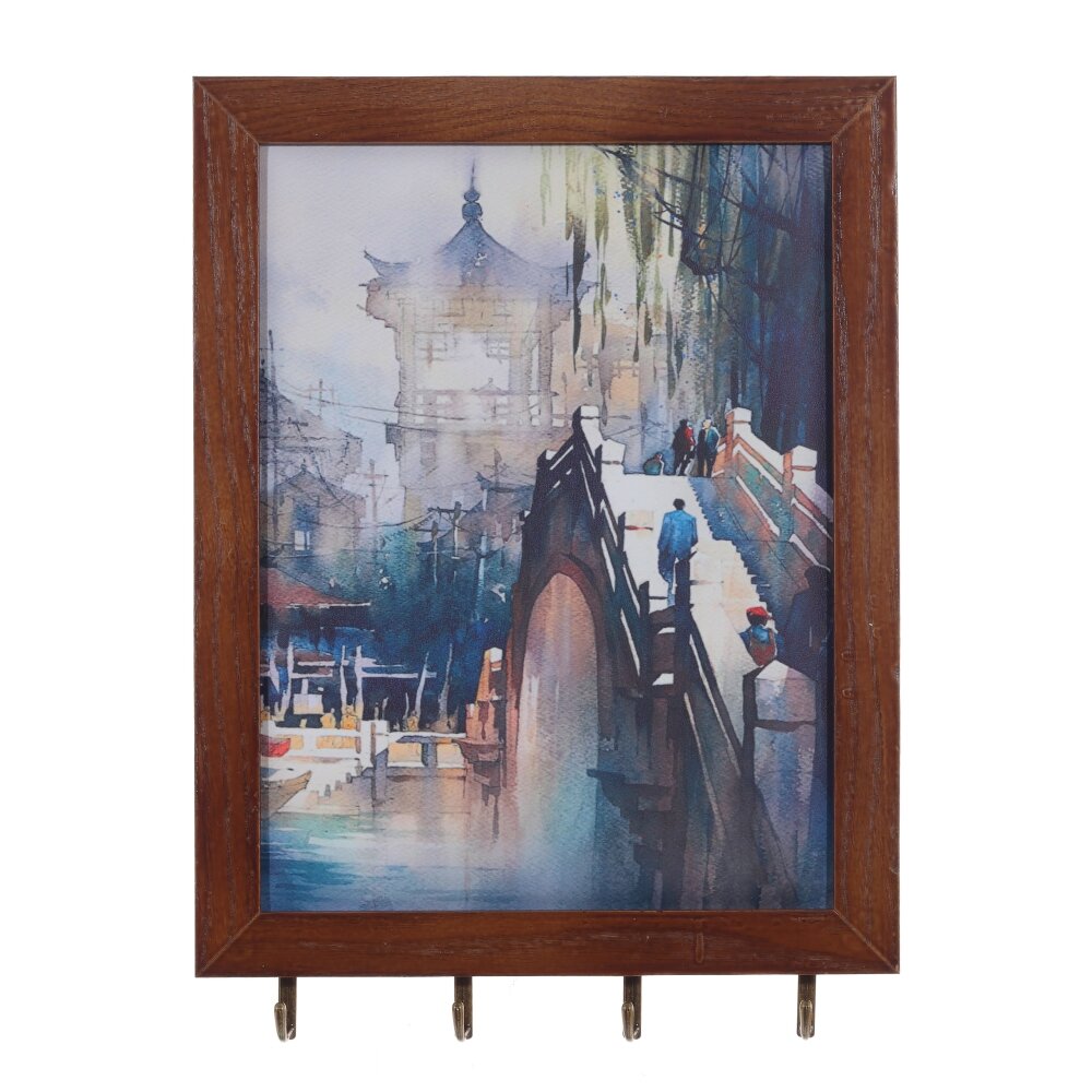 Ключница открытого типа с четырьмя крючками. Цвет рамки - белый. Центральная часть с изображением городского пейзажа. Изделие выглядит современно и стильно, не отказывайте себе в удовольствии созерцать это произведение каждый день.