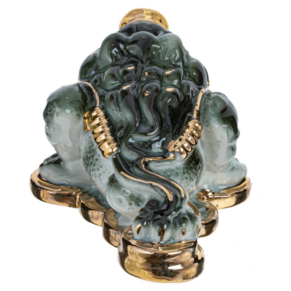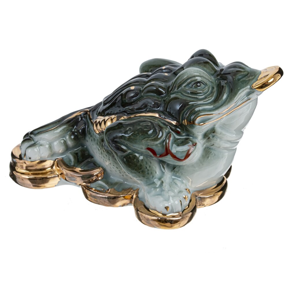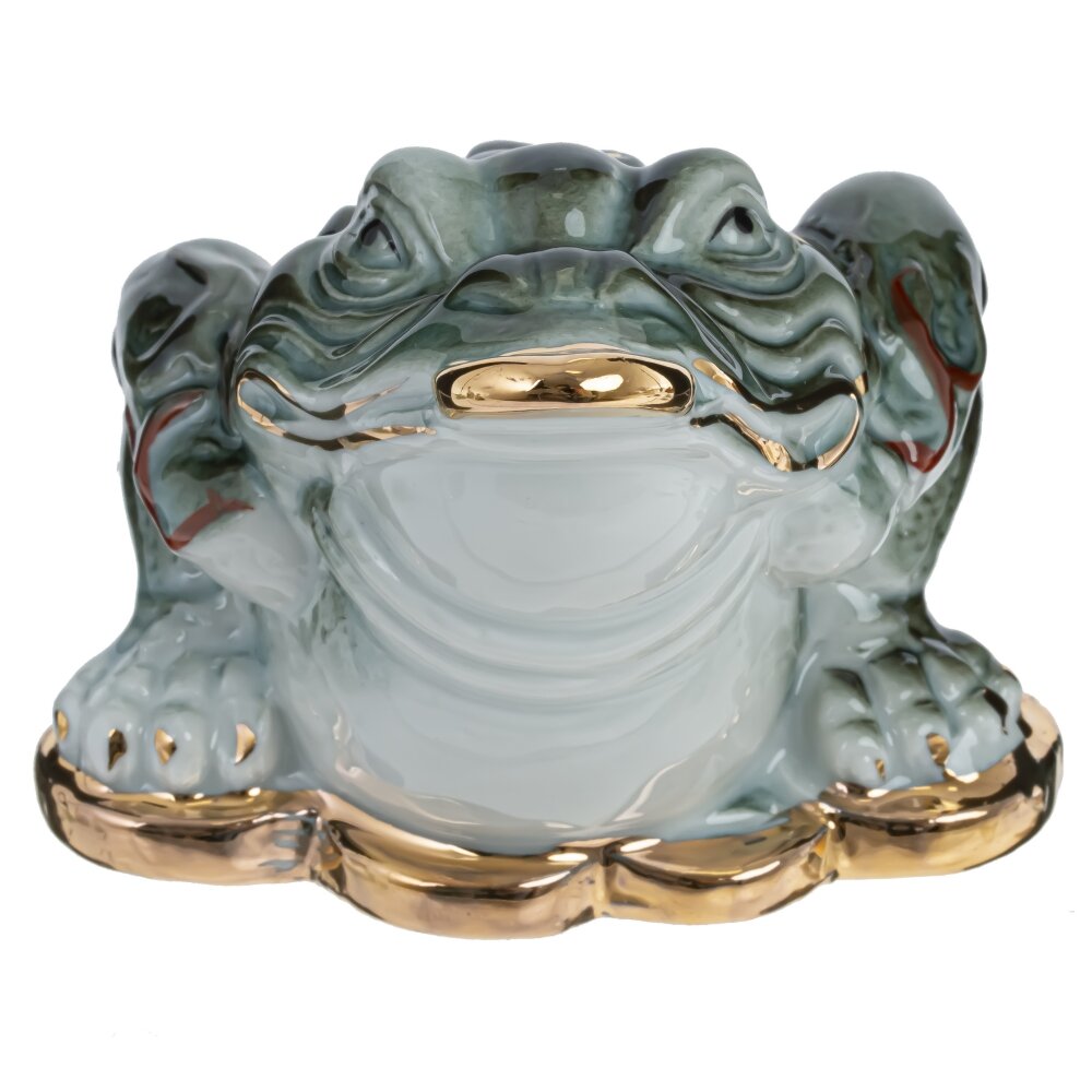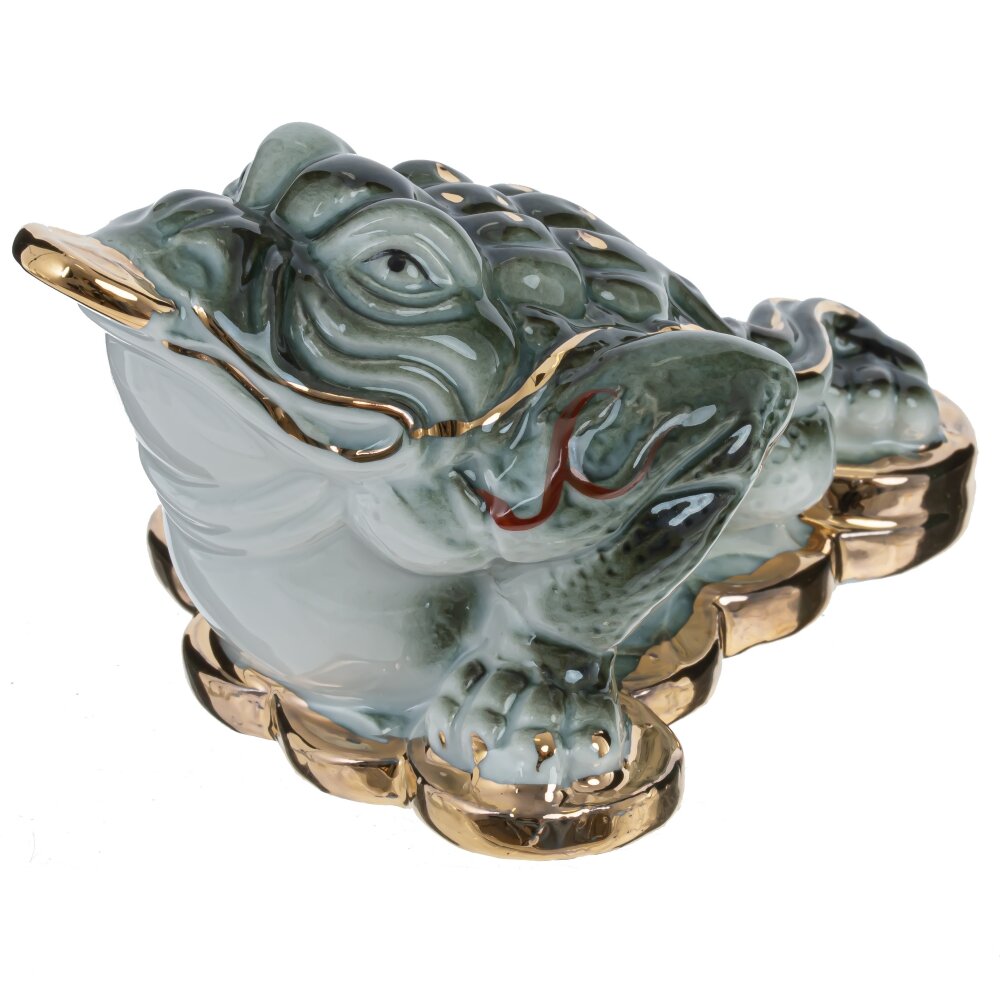 Фарфоровая фигурка денежной лягушки. Ее зеленый цвет символизирует рост и изобилие, а стоя на золотых монетках, она призывает к материальному благополучию. Этот предмет декора не только украсит ваш интерьер, но и напомнит о важности финансовой стабильности.