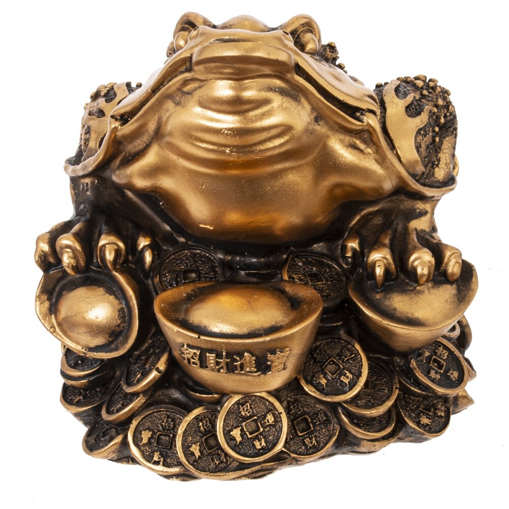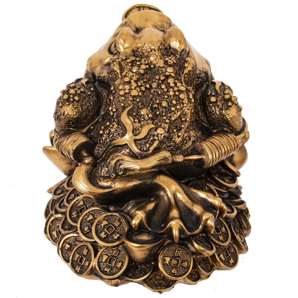 Декоративная фигурка в виде золотой жабы на монетах — это символ достатка, удачи и благополучия в доме. Ее часто используют в фэн-шуй для привлечения финансового процветания. Выполненная из прочного материала, фигурка покрыта золотистым оттенком, что придает ей элегантный и роскошный вид. Жаба держит в пасти монету, что символизирует постоянный приток денежных средств. Отлично впишется в интерьер дома или офиса, добавляя атмосферу стабильности и успеха. Прекрасный подарок для людей, стремящихся к финансовому благополучию.