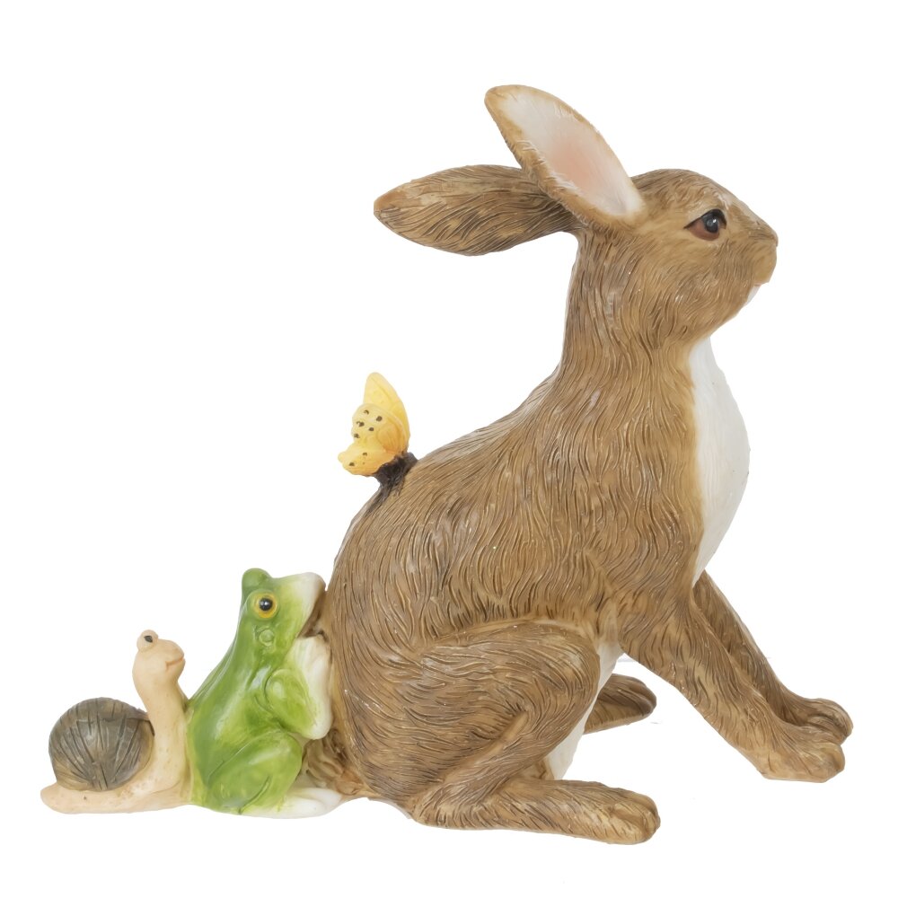 Декоративная пасхальная фигурка «Зайчик с друзьями» станет трогательным акцентом весеннего интерьера. Милый заяц в натуральных коричневых тонах сидит, насторожив длинные ушки, на его спине расположилась ярко-жёлтая бабочка. К зайцу прижалась зелёная лягушка, а рядом устроился забавный улитёнок. Детальная проработка шерсти, плавных линий и выразительных мордочек создаёт ощущение живой лесной полянки. Фигурка гармонично впишется в пасхальную композицию, украсит праздничный стол, подоконник или детскую комнату и подарит атмосферу уюта, тепла и ожидания чуда. Отличный вариант подарка к Пасхе и весенним праздникам.