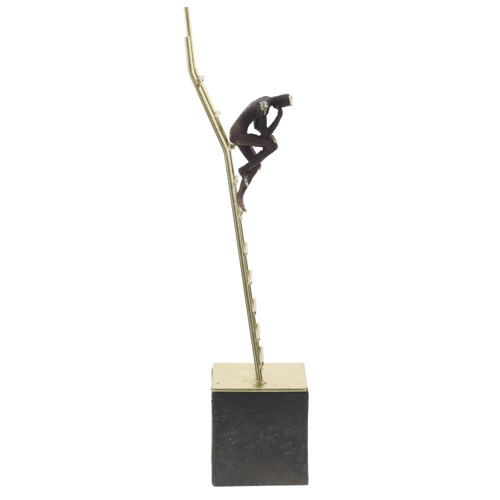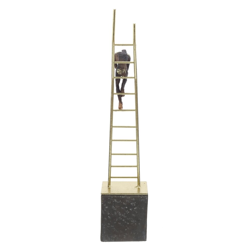Декоративная фигурка из полимерных материалов в виде абстрактного человека на высокой лестнице — стильный акцент для современного интерьера. Фигура задумчиво сидит на ступенях, создавая ассоциации с движением вперёд, целеустремлённостью и мечтой. Лёгкий блеск золотистой лестницы контрастирует с тёмным кубическим основанием, благодаря чему композиция смотрится особенно эффектно на полке, в рабочем кабинете или гостиной. Фигурка подойдёт как оригинальный подарок ценителям необычного декора и станет выразительной деталью в оформлении дома или офиса, легко вписываясь как в минималистичный, так и в лофт интерьер.