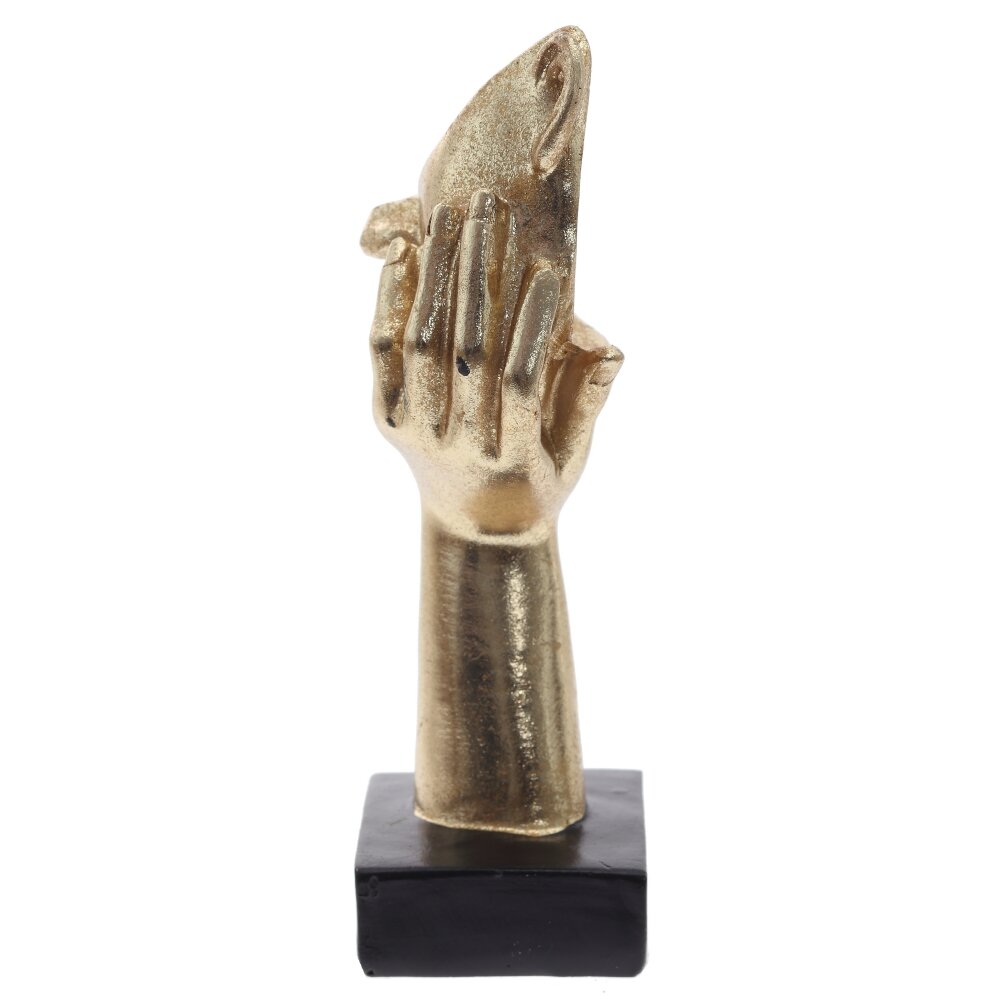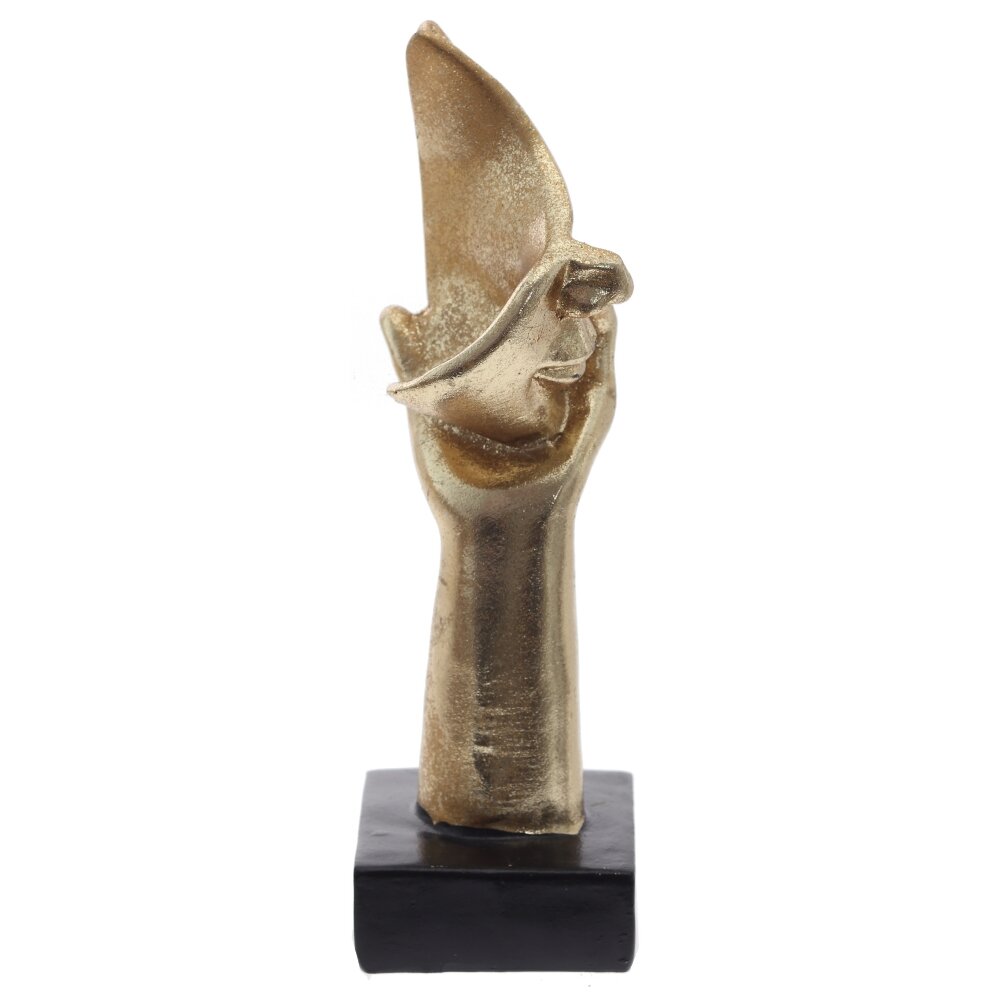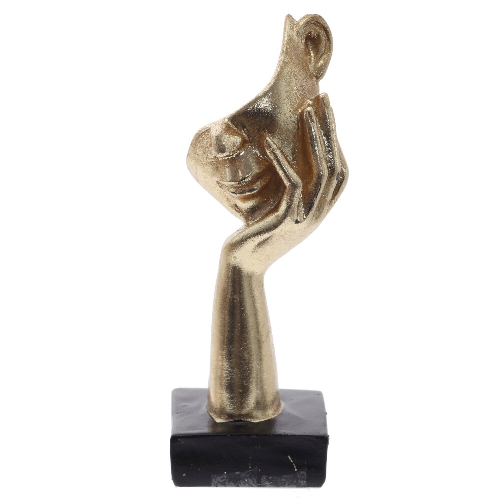 Декоративная фигурка "Лицо" – это изысканный элемент интерьера, который привнесёт в пространство нотки утончённости и современного искусства. Выполненная из полимерных материалов, она обладает высокой прочностью и долговечностью. Дизайн в виде абстрактного лица, поддерживаемого рукой, символизирует глубину эмоций и размышления. Цветовое решение в золотом цвете придаёт скульптуре элегантность и универсальность, позволяя ей гармонично вписаться в любой стиль – от минимализма до модерна. Основание из черного материала обеспечивает устойчивость, что делает её идеальным аксессуаром для полок, тумбочек или рабочих столов. Отличный подарок для ценителей искусства и стильного декора.