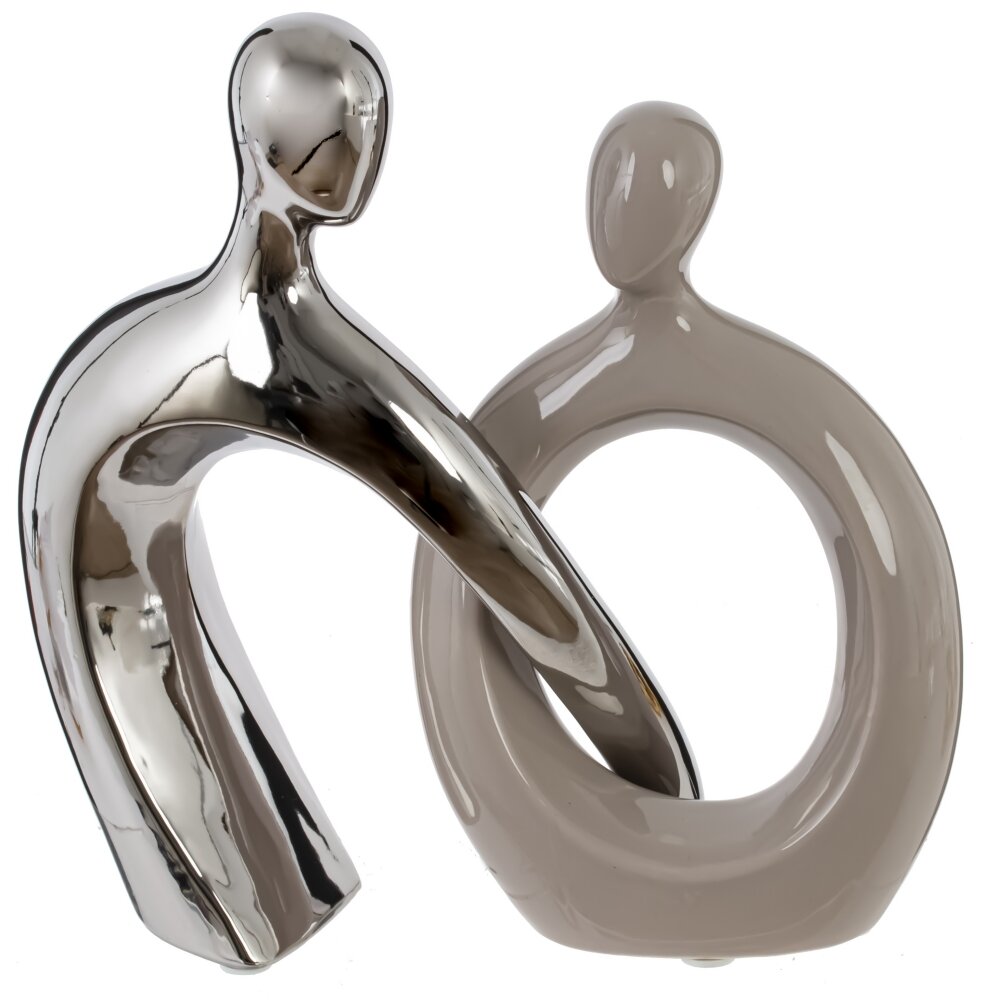 Декоративная фарфоровая фигурка "Пара" представляет собой современное художественное воплощение единства и гармонии двух людей. Минималистичная композиция выполнена в лаконичном стиле: фигуры абстрактны, без лишних деталей, что придаёт изделию особую утонченность и универсальность. Одна часть композиции покрыта серебряной зеркальной глазурью, вторая — сдержанно-бежевая, с глянцевой поверхностью, что создаёт интересный контраст и эффект глубины. Фигурка символизирует соединение, поддержку и взаимопонимание между двумя людьми, что делает её прекрасным подарком для влюбленных или семейной пары. Такой предмет интерьера станет стильным акцентом в гостиной, спальне или офисе, подчеркивая особую атмосферу уюта и тепла.