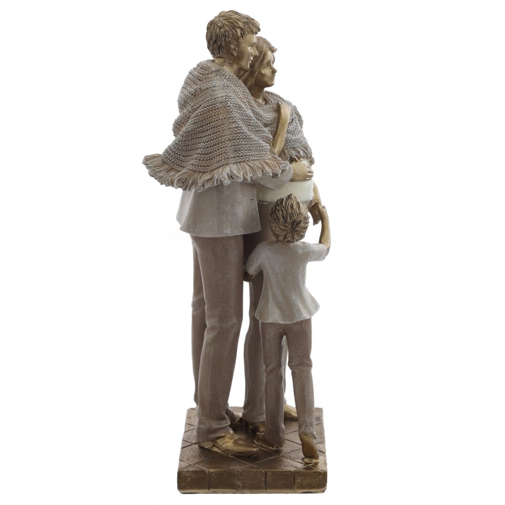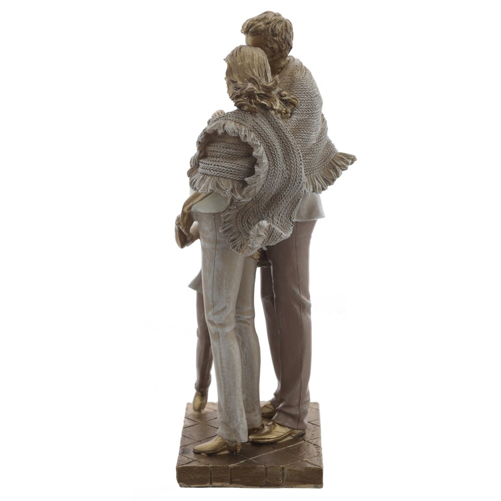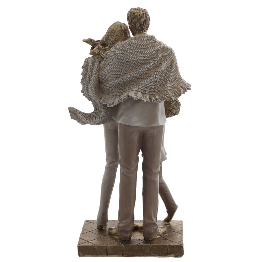 Декоративная фигурка «Семья» – трогательное воплощение домашнего уюта и гармонии. Композиция изображает любящих родителей, укрытых одним тёплым пледом, и ребёнка, который нежно прижимается к ним. Детально проработанные лица, складки одежды и фактура вязаного покрывала создают ощущение живого движения и тепла. Благородная гамма с бронзовым отливом делает фигурку выразительным акцентом в интерьере гостиной, спальни или детской. Такой декор станет символом семейных ценностей, прекрасным подарком на годовщину свадьбы, рождение ребёнка или новоселье, напоминая о самом важном – любви и единстве близких людей.