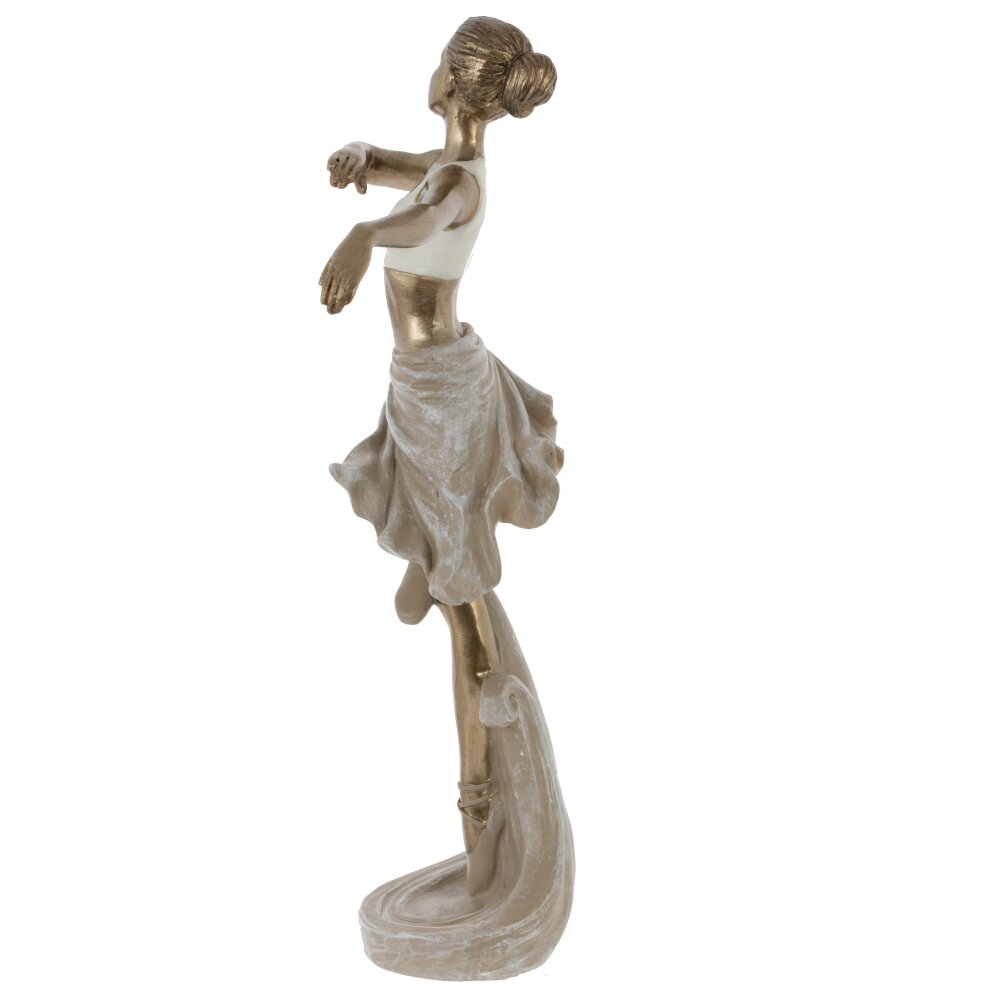 Перед вами изящная декоративная фигурка «Балерина», выполненная из современных полимерных материалов. Эта статуэтка олицетворяет грацию, легкость и утонченность, присущие миру балета. Балерина изображена в классической позе — на одной ноге, с вытянутыми руками, словно в момент исполнения сложного танцевального элемента. Благодаря плавным линиям силуэта и тщательно проработанным деталям, фигурка выглядит гармонично и элегантно. Поверхность выполнена в золотистых и светлых оттенках, что придает статуэтке особый шарм. Такое изделие станет отличным дополнением интерьера, подчеркнёт изысканный вкус владельца, а также может стать прекрасным подарком для ценителей искусства или поклонников балета.