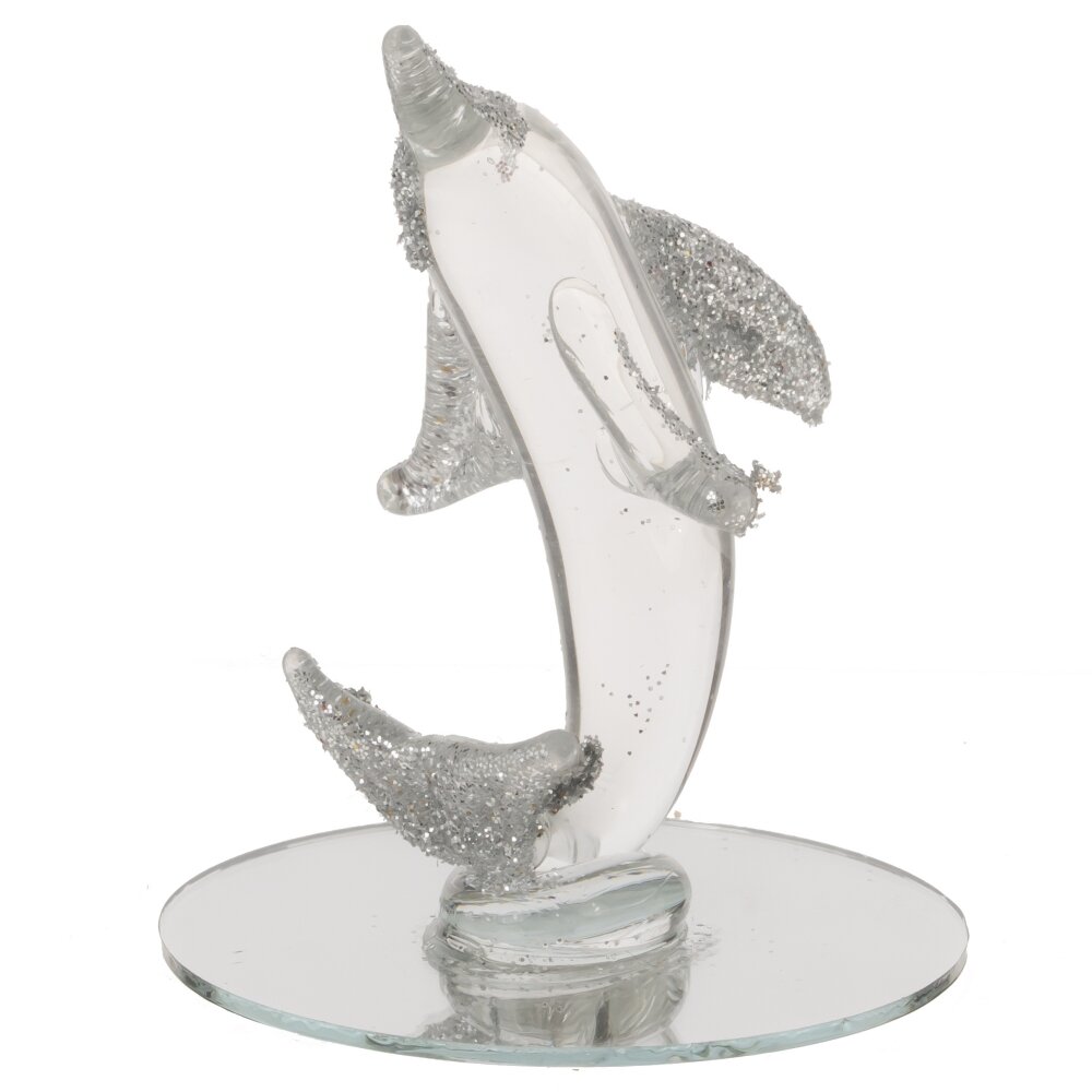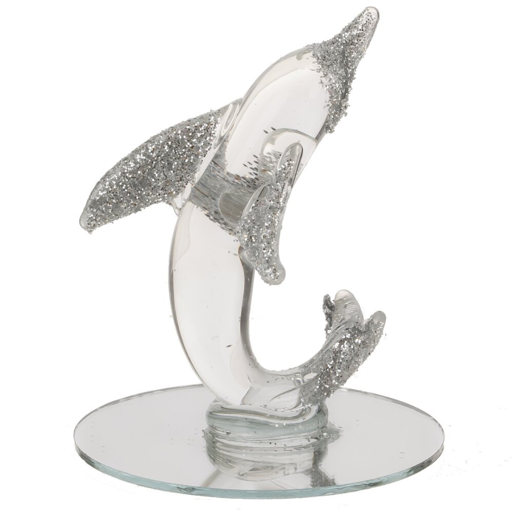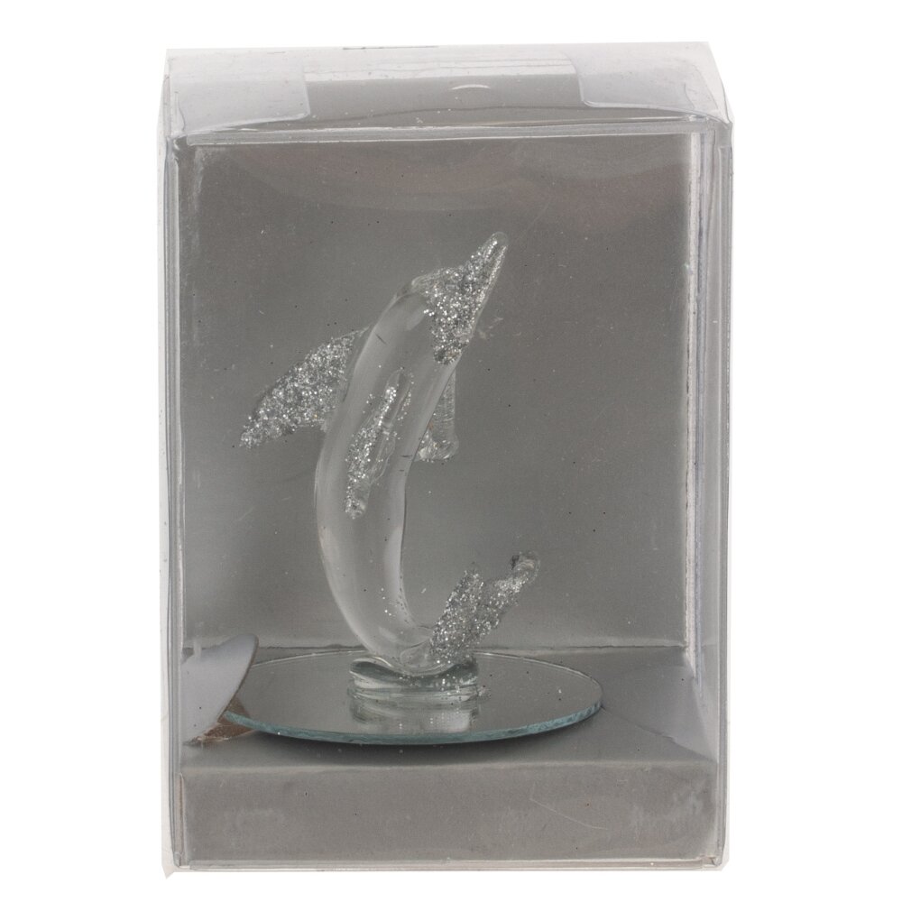 Представляем вашему вниманию изящную декоративную фигурку "Дельфин", которая станет неподражаемым акцентом в любом интерьере. Эта миниатюрная композиция имеет высоту всего 5,5 см и выполнена из высококачественного стекла, которое придает ей особую легкость и прозрачность. Дельфин, символизирующий дружелюбие и гармонию, выглядит невероятно живо и динамично, словно готов в любой момент прыгнуть из глубины океана. Фигурка установлена на круглой зеркальной подставке, которая не только красиво дополняет общий дизайн, но и создает эффектное отражение, благодаря которому дельфин кажется еще более объемным и реалистичным. Такой элемент декора станет идеальным дополнением к вашему рабочему столу, полке. Он привнесет в пространство нотки морского настроения и легкости, способствуя расслаблению и наслаждению атмосферой уюта.
