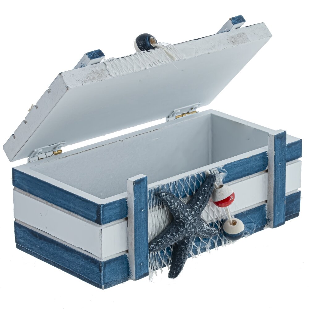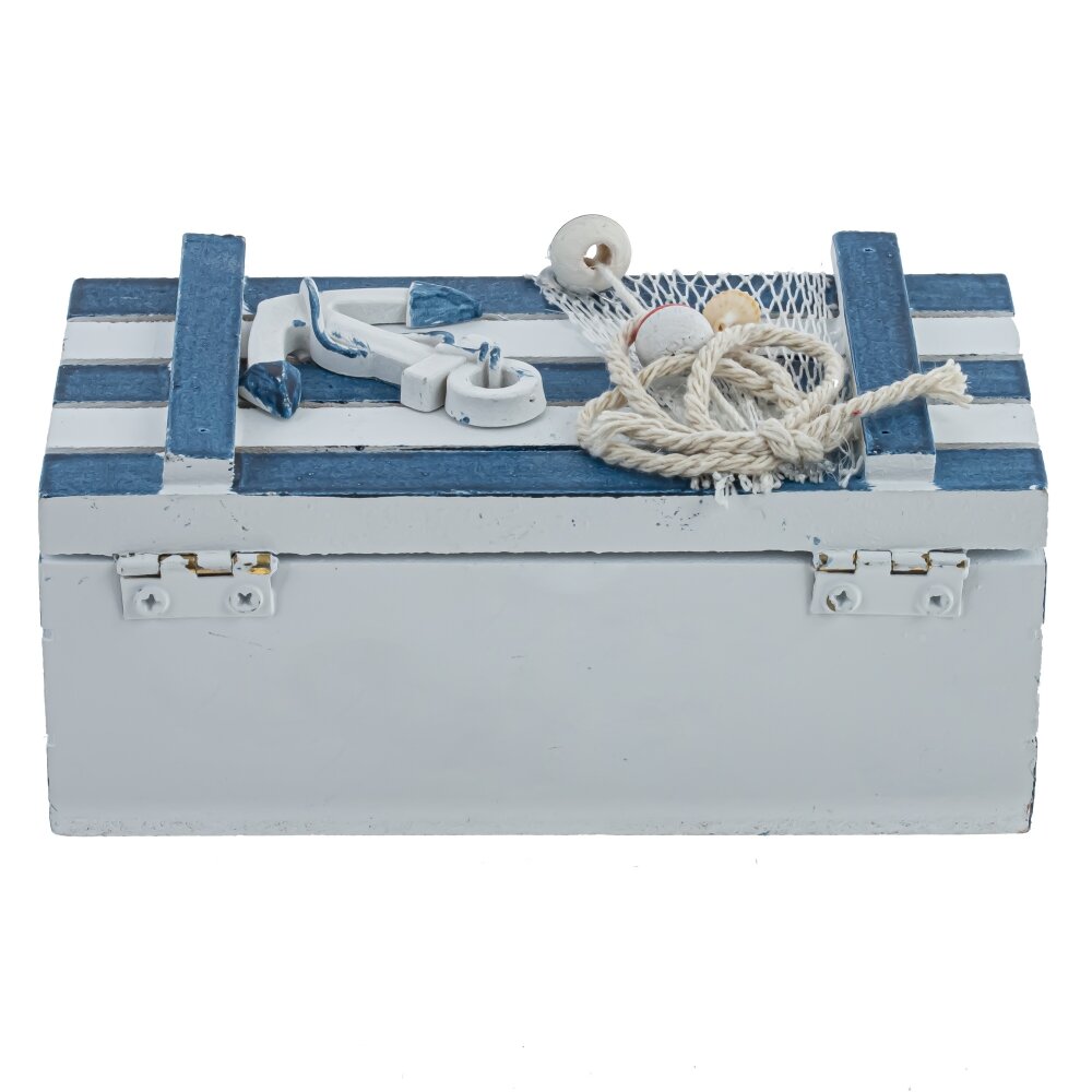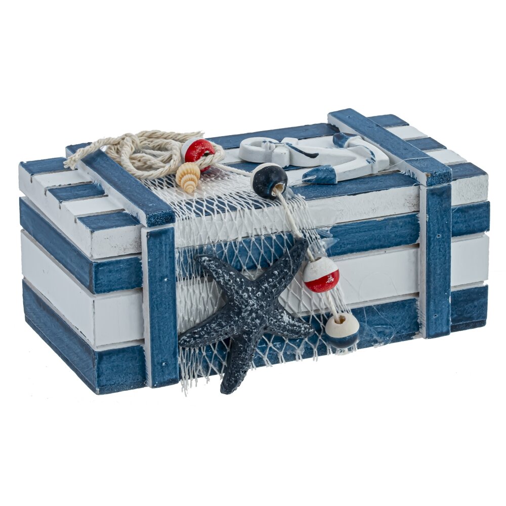 Шкатулка в морском стиле. Изготовленная из дерева, она придает ощущение природной теплоты и уюта. Объемный декор в виде ракушек, морской звезды, якоря и рыболовной сети создает атмосферу моря и путешествий, добавляя особый шарм и легкость. Эта шкатулка станет отличным украшением для любого помещения и неповторимым акцентом в вашем интерьере. Ее теплый и уютный дизайн привнесет в ваш дом нотку морского бриза и радости от отдыха у моря, напоминая о ярких моментах жизни и путешествиях.