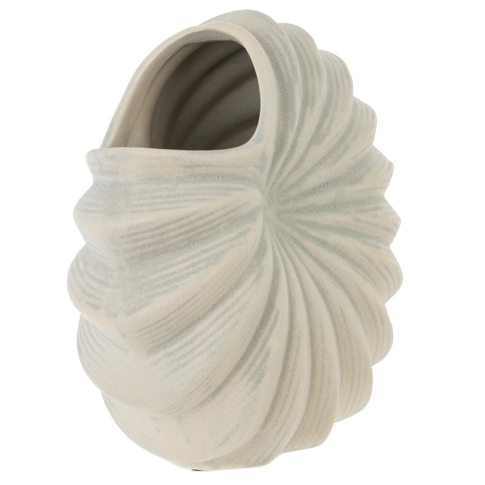 Эта великолепная ваза для искусственных цветов выполнена из фарфора и обладает объемом 1750 мл, что позволяет разместить в ней достаточно большое количество декоративных элементов. Ее форма напоминает изящную ракушку, что придаёт изделию уникальность и характер. Светло-серый цвет вазы придаёт ей изысканный вид, легко гармонирует с различными стилями интерьера и отлично сочетается с яркими или нейтральными оттенками букетов. Эта ваза станет прекрасным акцентом в вашем доме, добавляя в него ощущение природы и свежести. Ее можно разместить в гостиной, кухне или офисе, где она будет радовать глаз и дополнять атмосферу. К тому же, такая ваза прекрасно подходит для любителей искусственных цветов, позволяя создавать стильные и долговечные композиции. Применяйте её как самостоятельный элемент декора или в сочетании с другими аксессуарами, чтобы внести разнообразие в ваш интерьер. Размер горловины: 7.5*7.5 см.