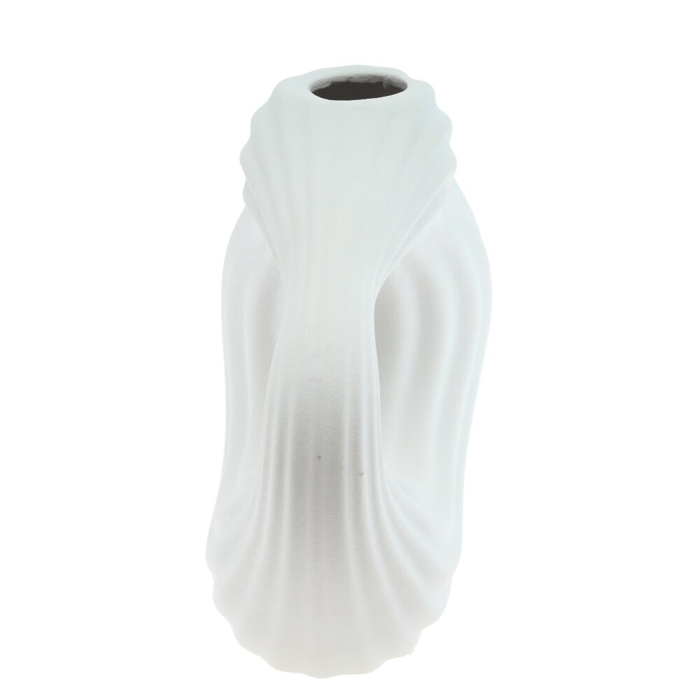 Эта изящная ваза для искусственных цветов объёмом 1350 мл выполнена из фарфора. Её оригинальная форма с плавными линиями и сквозным отверстием делает её стильным элементом декора, который идеально вписывается в современный интерьер. Поверхность вазы имеет рельефную текстуру, что придаёт ей интересный визуальный эффект и делает её гармоничным украшением пространства. Белый цвет позволяет легко сочетать её с различными оттенками мебели и аксессуаров, а также подчёркивает минималистичный и элегантный дизайн. Такая ваза станет отличным решением для оформления гостиной, спальни или офиса, создавая атмосферу уюта и стиля. Диаметр горловины: 3 см.