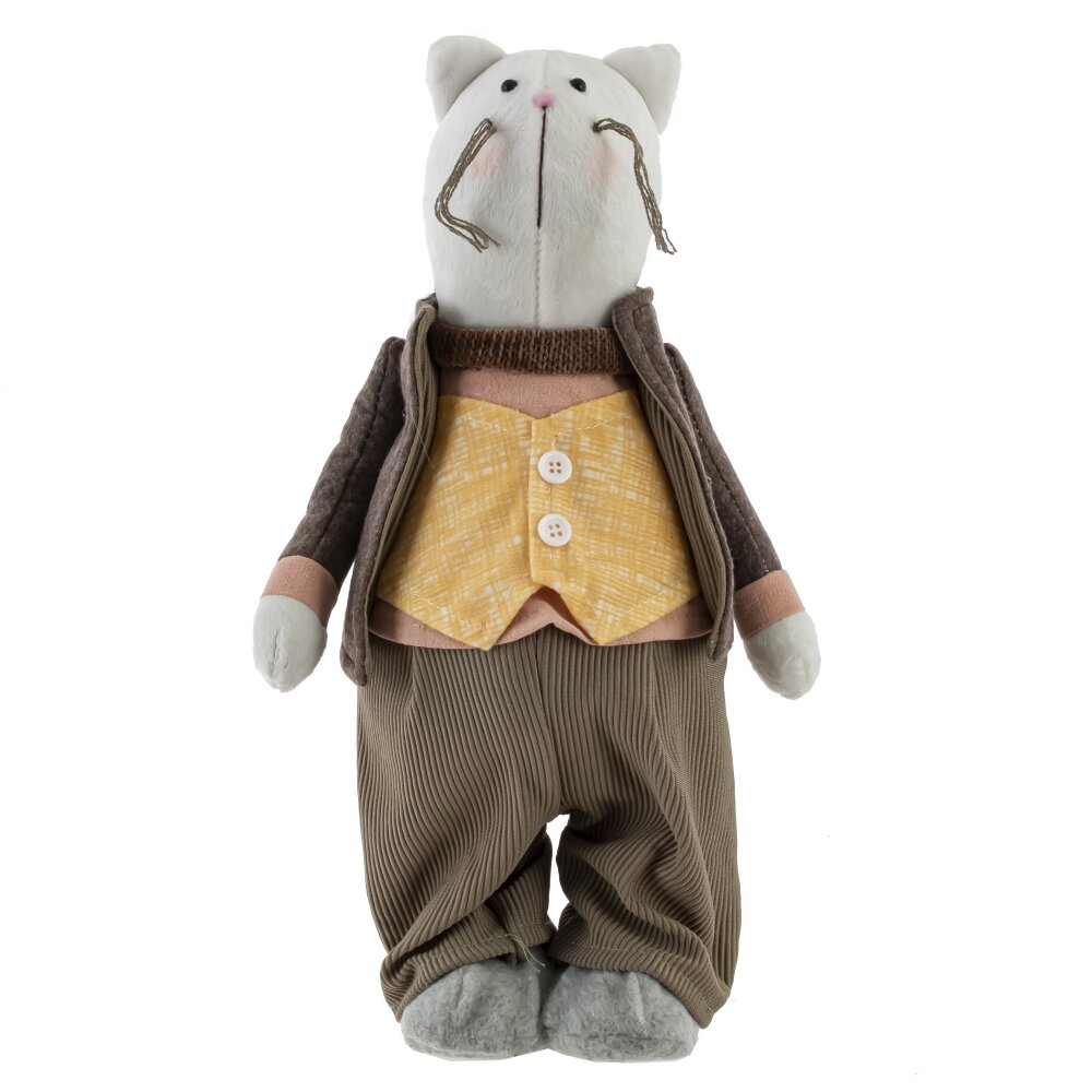 Мягкая набивная игрушка «Кот/Кошка» – очаровательный пасхальный декор и трогательный подарок для детей и взрослых. В ассортименте два вида: котик в жилете и брюках и кошечка в нарядном платье с цветочным принтом. Игрушки выполнены из приятного на ощупь текстиля в нежных пастельных тонах, устойчиво стоят и отлично смотрятся на полке, каминной полке или в пасхальной композиции с яйцами и весенними цветами. Подойдут для украшения дома, детской, витрины магазина, фотозоны, а также как стильный сувенир к Пасхе.