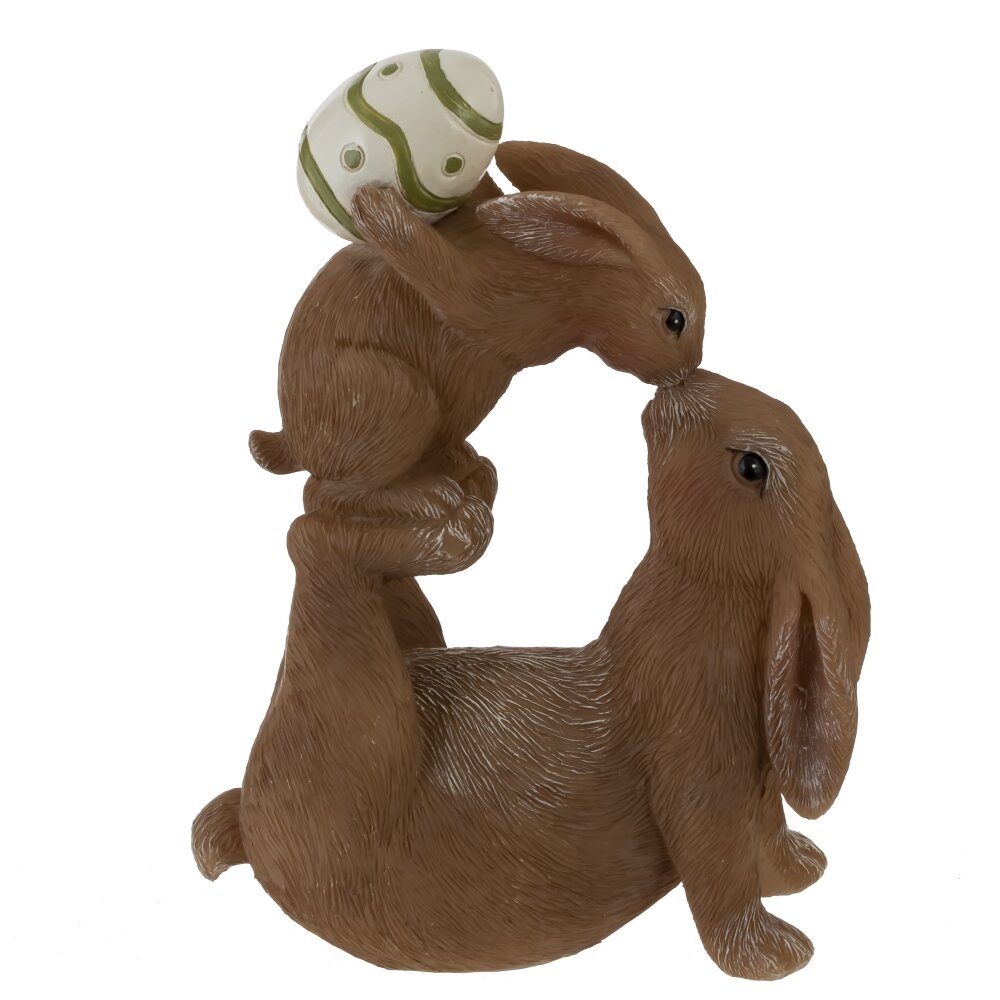 Декоративная фигурка «Пасхальные зайцы» станет трогательным акцентом в праздничном оформлении дома. Милый зайчонок с расписным пасхальным яйцом в лапках играет с заботливой мамой-зайкой, создавая ощущение уюта и семейного тепла.