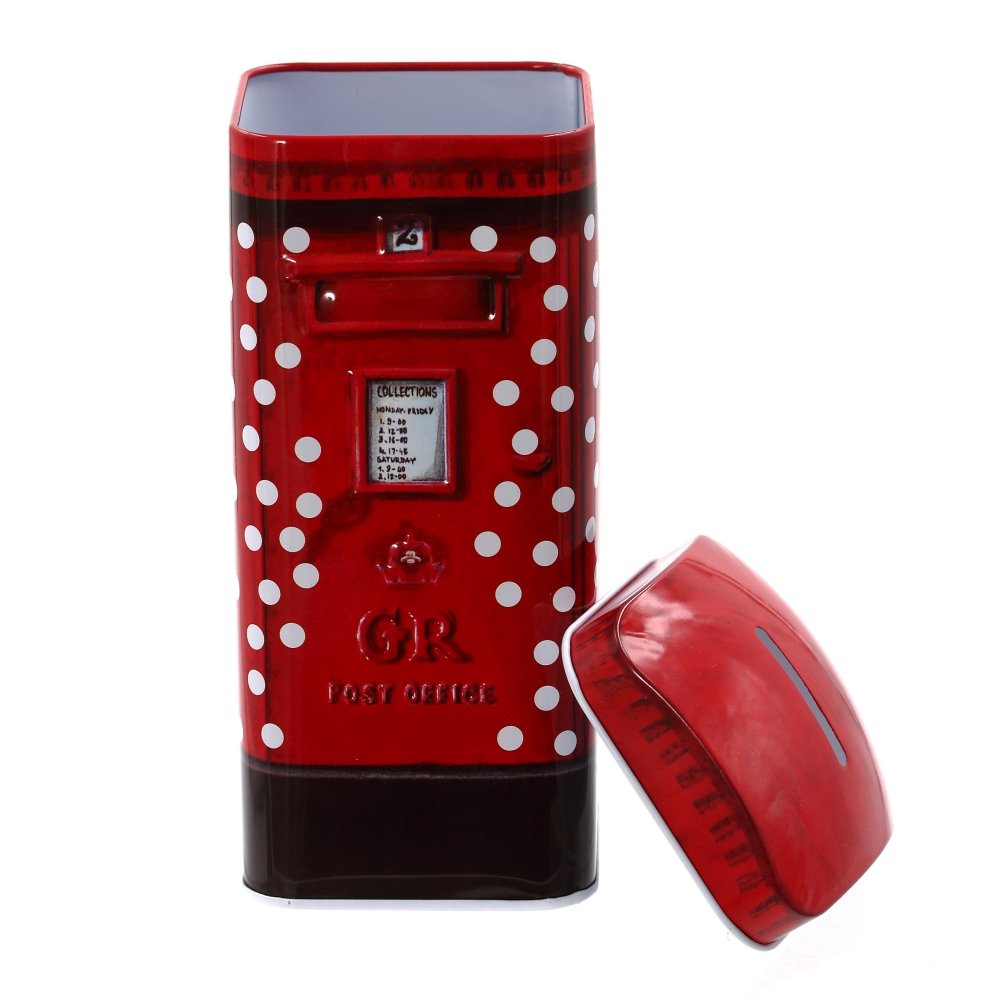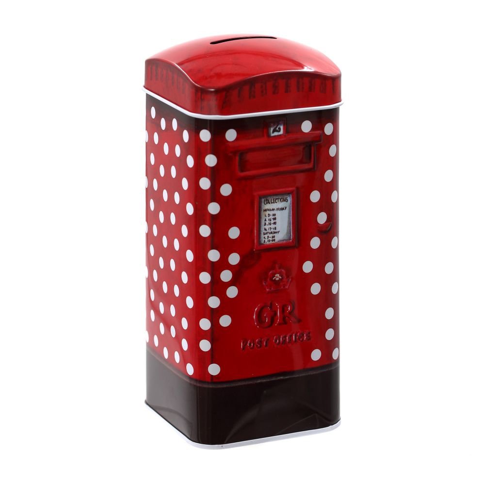 Металлическая копилка, оформленная в виде почтового ящика красного цвета в белый горох, отлично подойдёт в качестве подарка на день рождения или просто для того, чтобы накопить на что-то нужное и полезное.