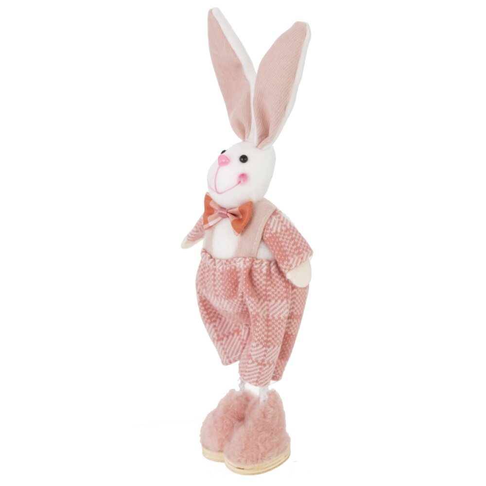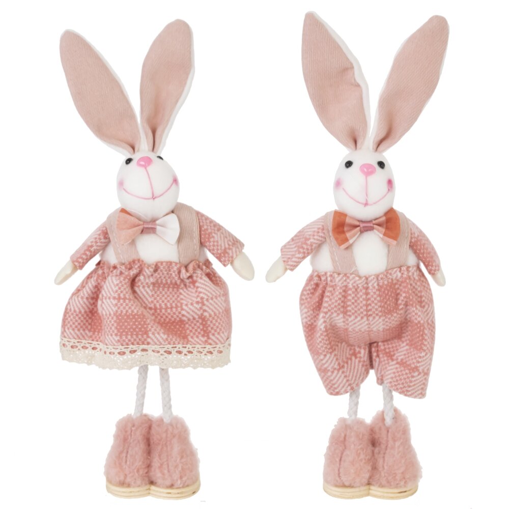 Эта очаровательная пасхальная фигурка в виде Зайчика станет прекрасным украшением для праздничного интерьера. Представлена в двух вариантах – Зайка в платье и Заяц в комбинезоне. Изготовлена из полимерных и текстильных материалов, дерева и металла, благодаря чему выглядит изысканно и стильно. Фигурки выполнены в нежных розовых тонах, что придает уютный вид. Мордочка Зайца украшена милой улыбкой, а длинные ушки придают игривый облик. Одежда сшита из ткани в клетку, дополнена мелкими декоративными элементами, такими как кружевная отделка и бархатные бантики. Ножки фигурок — из металла, а обувь сделана из мягкого меха, создавая ощущение тепла и уюта. Идеально подходит для украшения комнаты, праздничного стола или подарка близким на Пасху. Эта фигурка добавит в ваш дом атмосферу весны, легкости и радости.