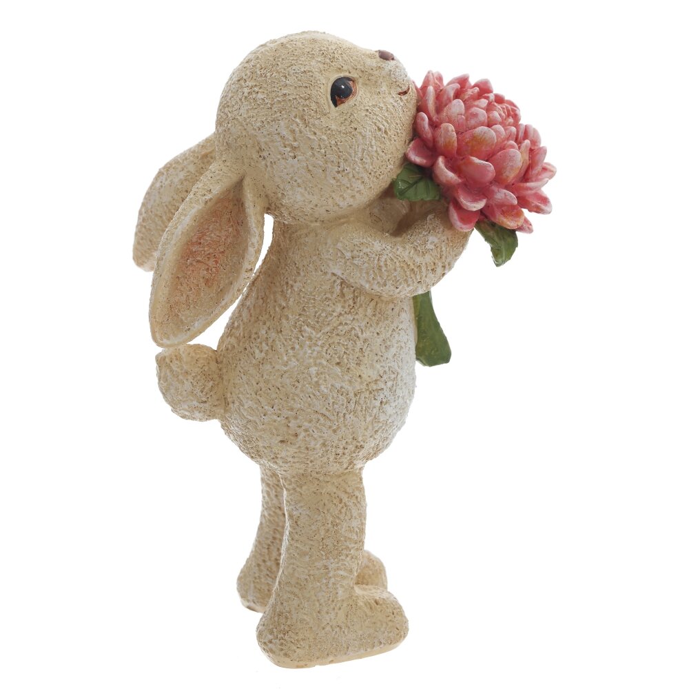 Декоративная фигурка «Зайка» – трогательный пасхальный акцент для вашего дома. Милый кролик из полимерных материалов стоит на задних лапках и держит в лапках крупный розовый цветок, словно приготовился поздравлять хозяев и гостей. Теплый бежевый оттенок и слегка шероховатая фактура придают фигурке вид керамики, а детально прорисованные лепестки создают ощущение живого букета. Фигурка отлично смотрится на праздничном столе, подоконнике или в композиции с пасхальными яйцами и весенними цветами. Подойдет как небольшое сувенирное украшение и оригинальный подарок к Пасхе, который создаст атмосферу уюта и радости.