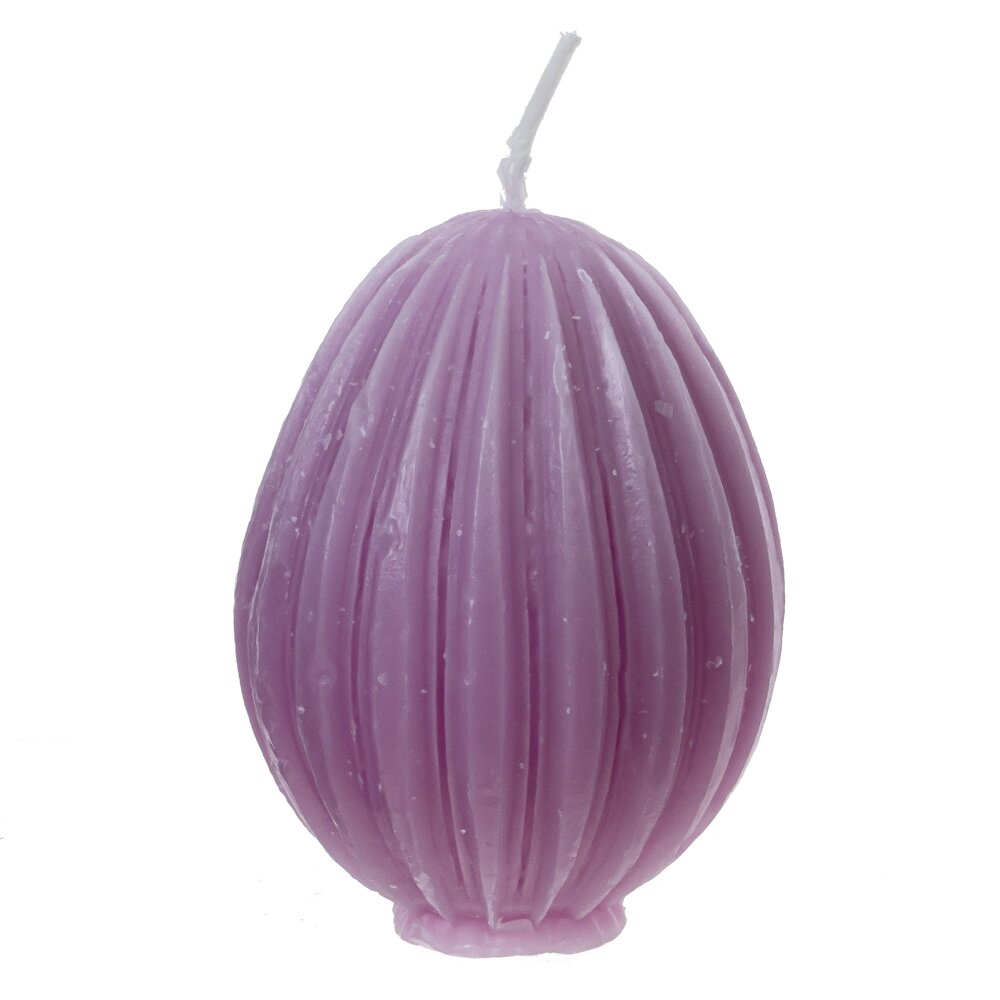 Пасхальная декоративная свеча в форме яйца нежно сиреневого оттенка. Рельефная ребристая поверхность придаёт свече оригинальный вид и делает её заметным акцентом праздничного стола или пасхальной композиции. Свеча горит ровным пламенем, постепенно раскрывая фактуру воска и создавая мягкое, уютное освещение. Подходит для оформления дома к Пасхе, сервировки, фотозон, подарочных наборов и сувениров для родных и коллег. Эстетичный сезонный декор, который легко сочетать с другими пасхальными атрибутами и текстилем в пастельных тонах.