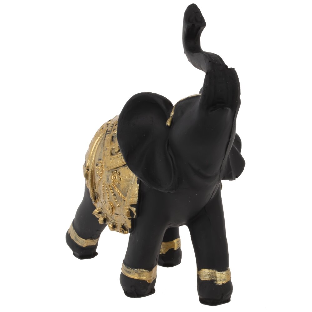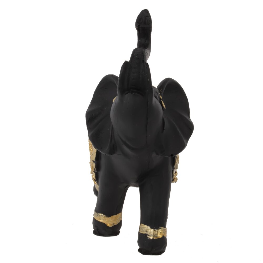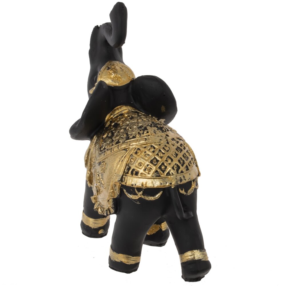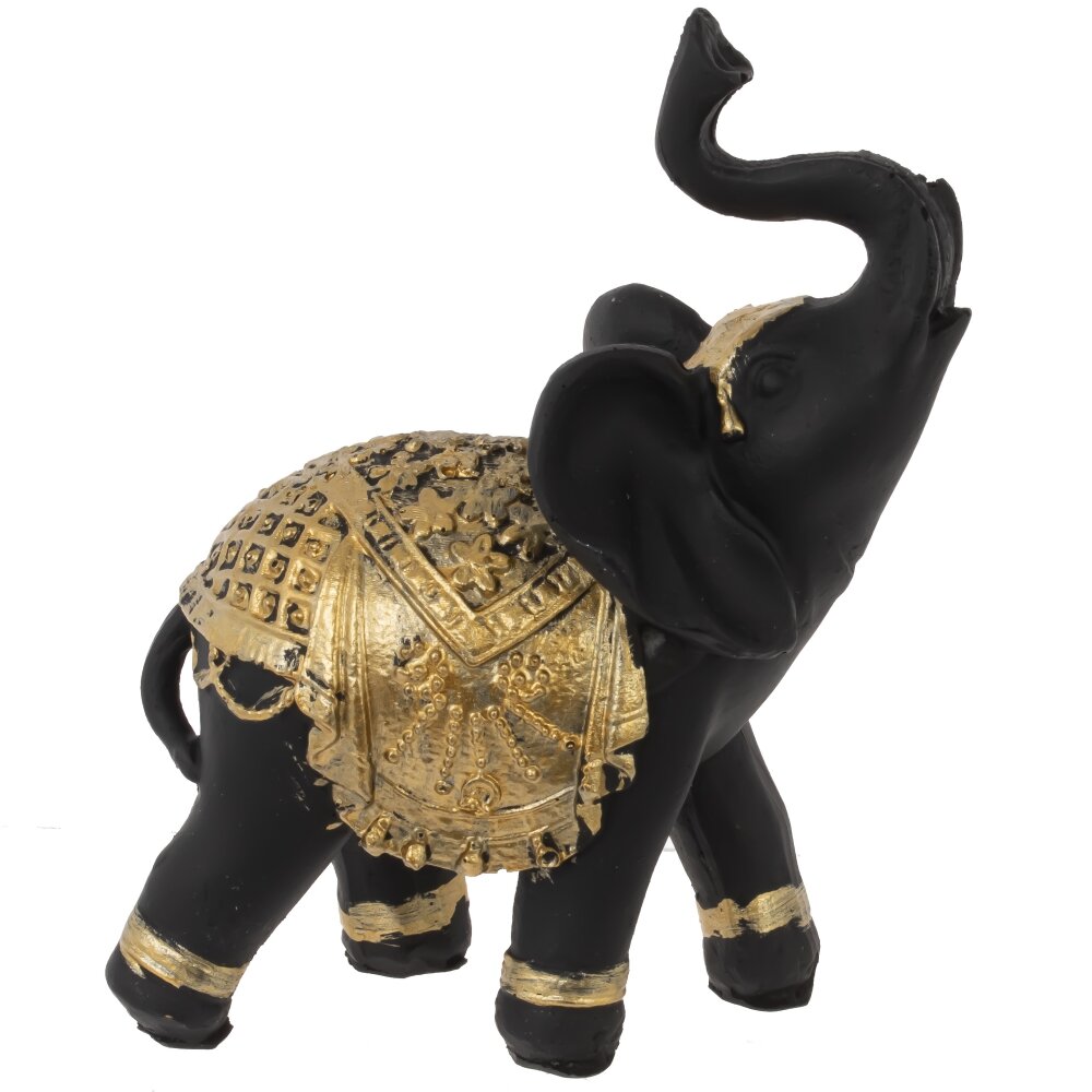 Декоративная фигурка "Слон" выполнена из полимерных материалов и сочетает в себе изящество и символичность. Статуэтка окрашена в черный цвет с золотыми элементами, которые придают ей изысканный вид. Поднятый хобот символизирует удачу, благополучие и процветание, что делает эту фигурку отличным талисманом для дома или офиса. Детализированное золотое убранство на спине слона придает изделию роскошный и восточный стиль. Такая фигурка станет прекрасным украшением интерьера и оригинальным подарком для близких, ценящих красивые и символичные вещи.