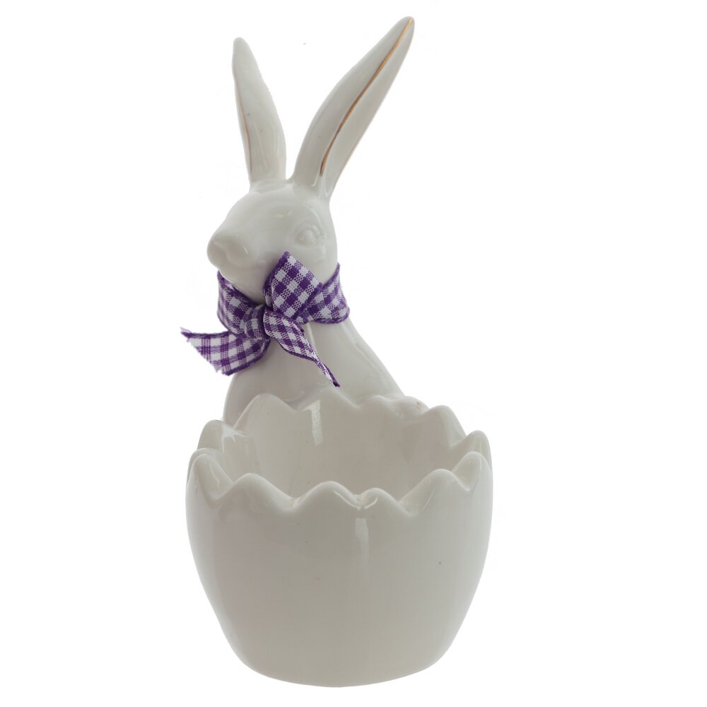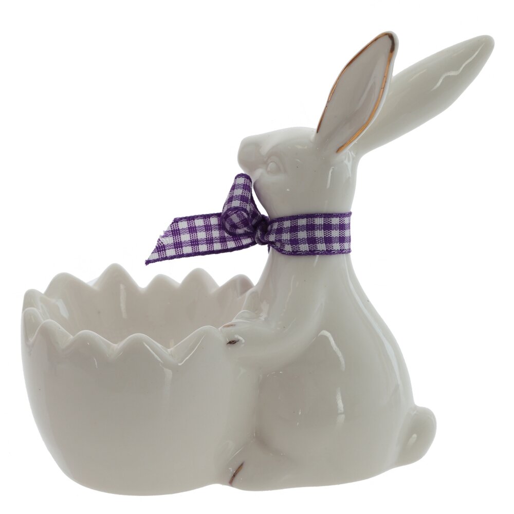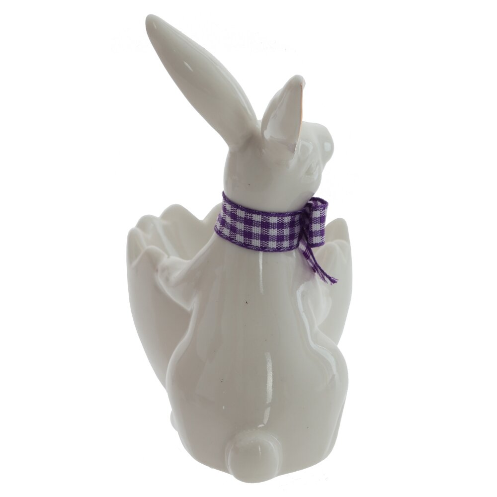 Прекрасная подставка для яйца "Заяц" станет изысканным украшением вашего пасхального стола. Выполненная из фарфора, она излучает лёгкость и шарм. Очаровательный белый заяц с текстильной ленточкой фиолетового цвета на шее притягивает взгляды и создает атмосферу весеннего праздника. Его милое выражение и аккуратные детали делают этот аксессуар не только функциональным, но и декоративным элементом, который добавит нотку уюта в ваш дом. Подставка идеально подходит для подачи яиц в праздничные дни, а также станет замечательным подарком для любителей необычных вещей. Обязательно порадуйте своих близких этой удивительной фигуркой, и пусть она станет символом весны и обновления в вашем доме.