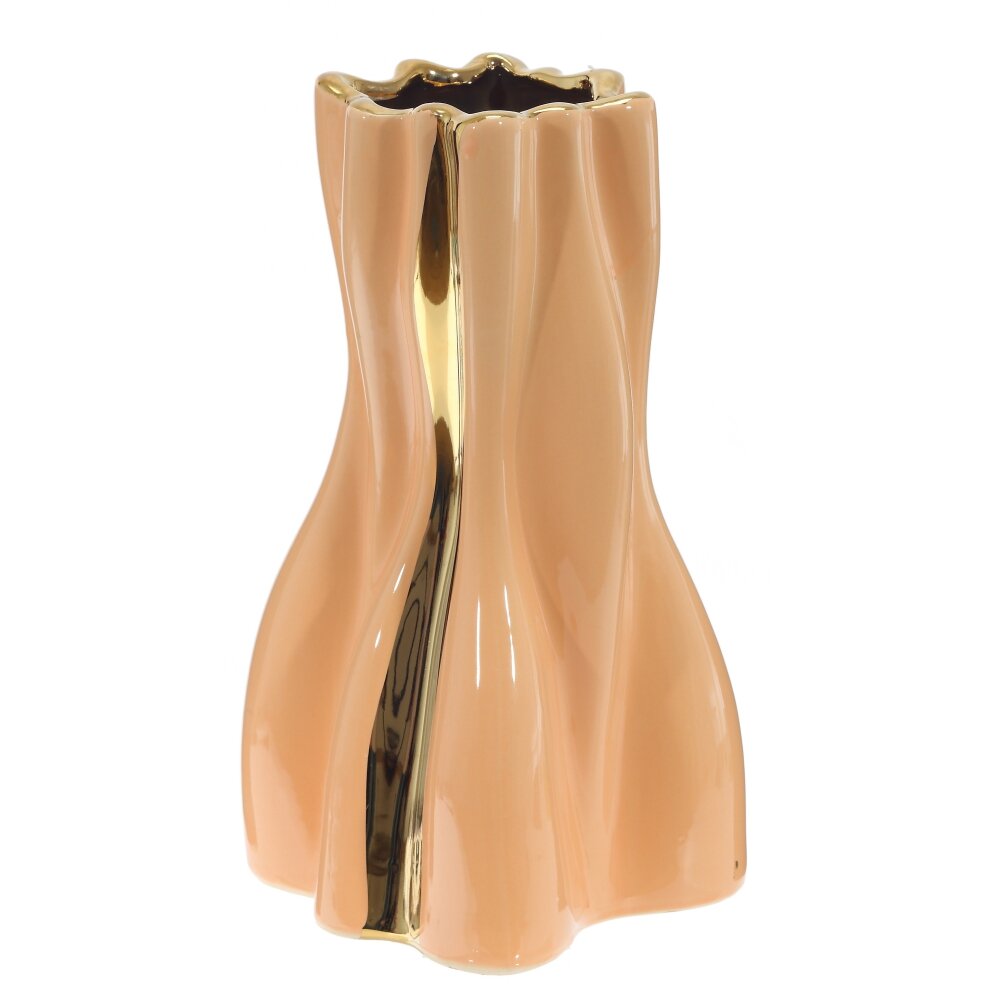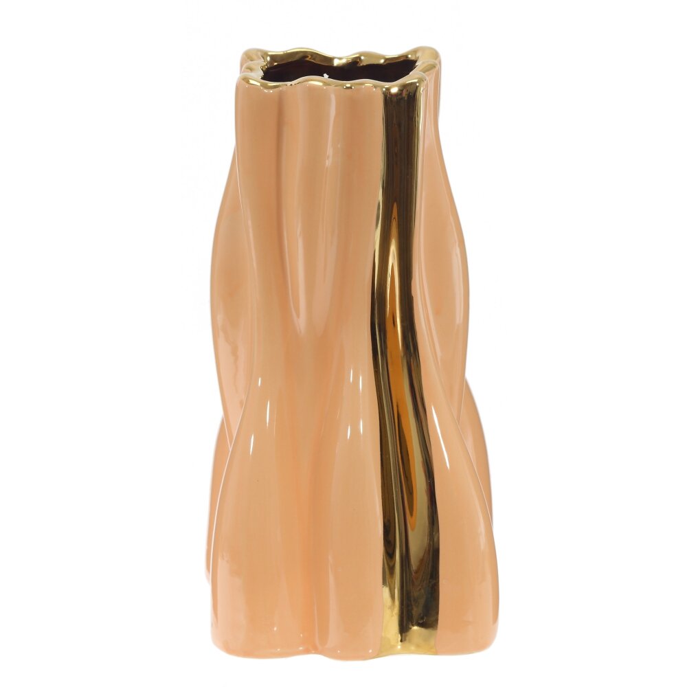Эта элегантная ваза из фарфора объемом 1500 мл станет изысканным акцентом в интерьере. Ее необычная форма с плавными изгибами и стильное сочетание нежного персикового оттенка с золотистыми вставками придают изделию роскошный вид. Благодаря глянцевой поверхности ваза эффектно отражает свет, создавая атмосферу уюта и гармонии. Подходит как для живых, так и для декоративных цветов. Идеальный выбор для оформления гостиной, спальни или офиса, а также отличный подарок для любителей стильных аксессуаров.