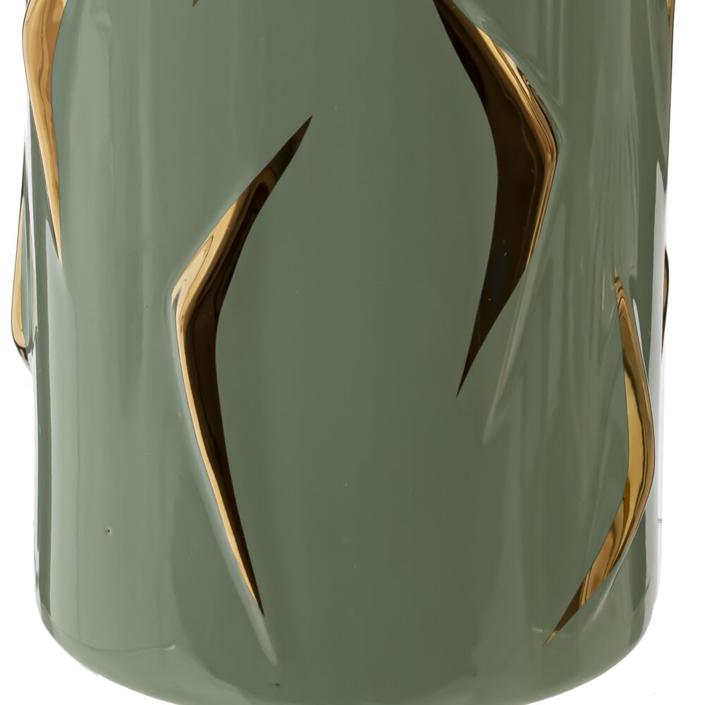 Эта ваза, изготовленная из фарфора, станет прекрасным дополнением любого интерьера. Ее уникальная форма, плавные линии и нежно оливковый цвет создают атмосферу утонченности и спокойствия. Золотой декор придает изделию особую элегантность и шарм. Таким образом, ваза не только служит функциональным предметом для размещения цветов, но и выполняет роль стильного акцента в дизайне помещения. Размер горловины вазы составляет 9*9 см, что делает ее идеально подходящей для небольших букетов или цветочных композиций. Она будет прекрасно смотреться как на обеденном столе, так и на полке или кофе-столе. Нежные тона и внимание к деталям придают вазе характер и индивидуальность, а её золотой декор создает игру света и тени. Используйте эту вазу для создания уютной атмосферы в вашем доме или в качестве изысканного подарка для близких. Она станет настоящим шедевром, который привлечет восхищенные взгляды.