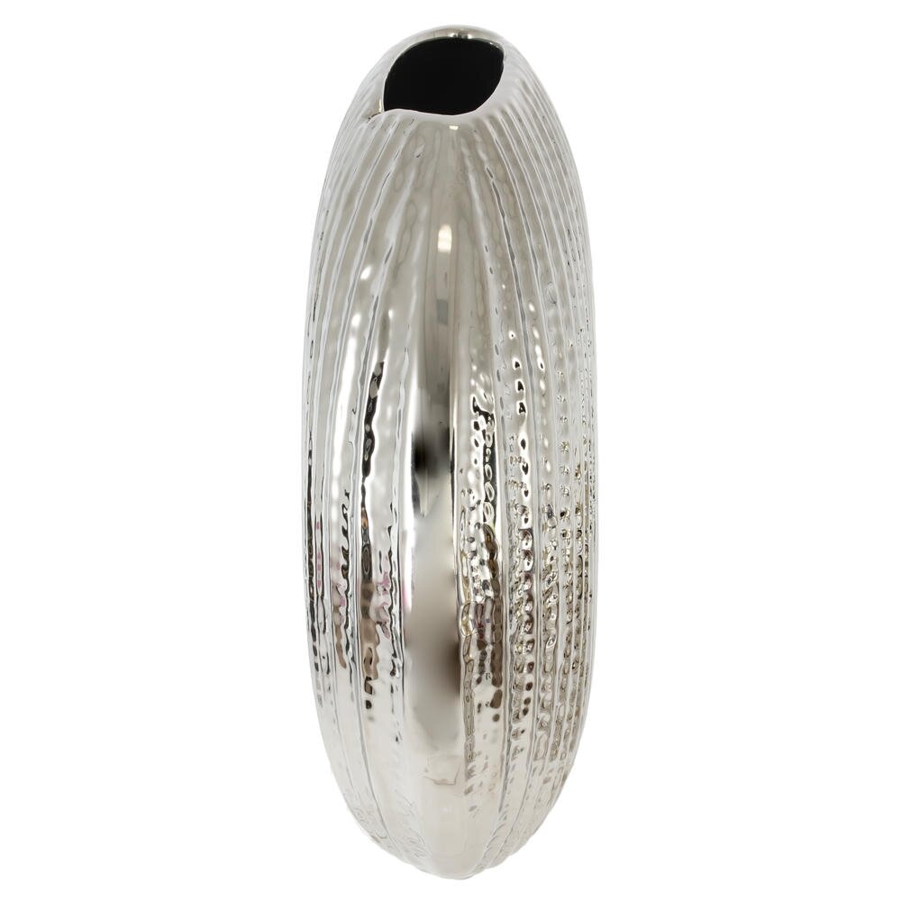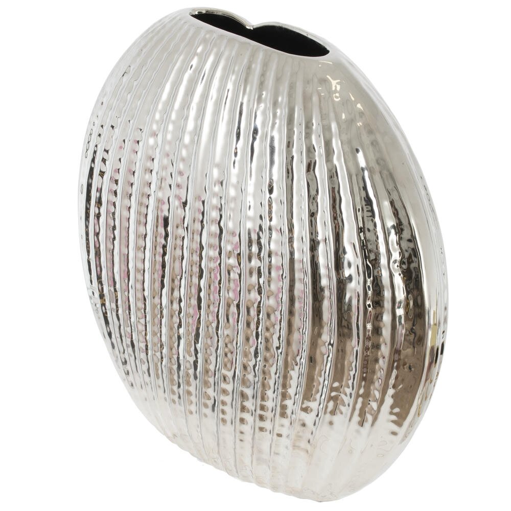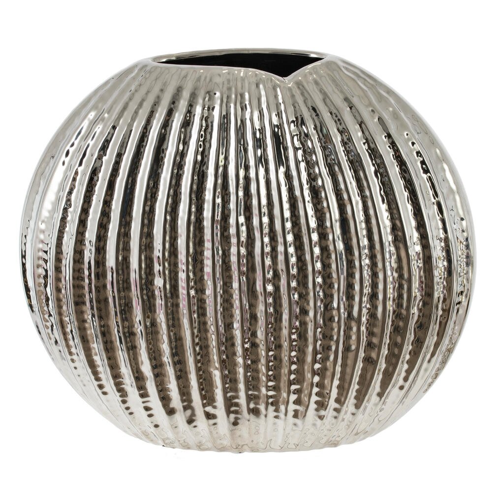 Стильная декоративная ваза объемом 2400 мл из высококачественного фарфора станет эффектным акцентом в современном интерьере. Глянцевое хромированное покрытие с выразительной ребристой фактурой создает оригинальную игру бликов и визуально добавляет пространству света и глубины. Изящная форма делает изделие самодостаточным элементом декора: ваза одинаково гармонично смотрится как с крупными букетами живых цветов, так и с сухоцветами или декоративными ветками. Подходит для гостиной, спальни, офиса, приемной, оформления витрин и фотозон. Прочный фарфор легко очищается и устойчив к выцветанию, поэтому ваза надолго сохранит безупречный внешний вид и станет элегантным украшением вашего дома или стильным подарком.