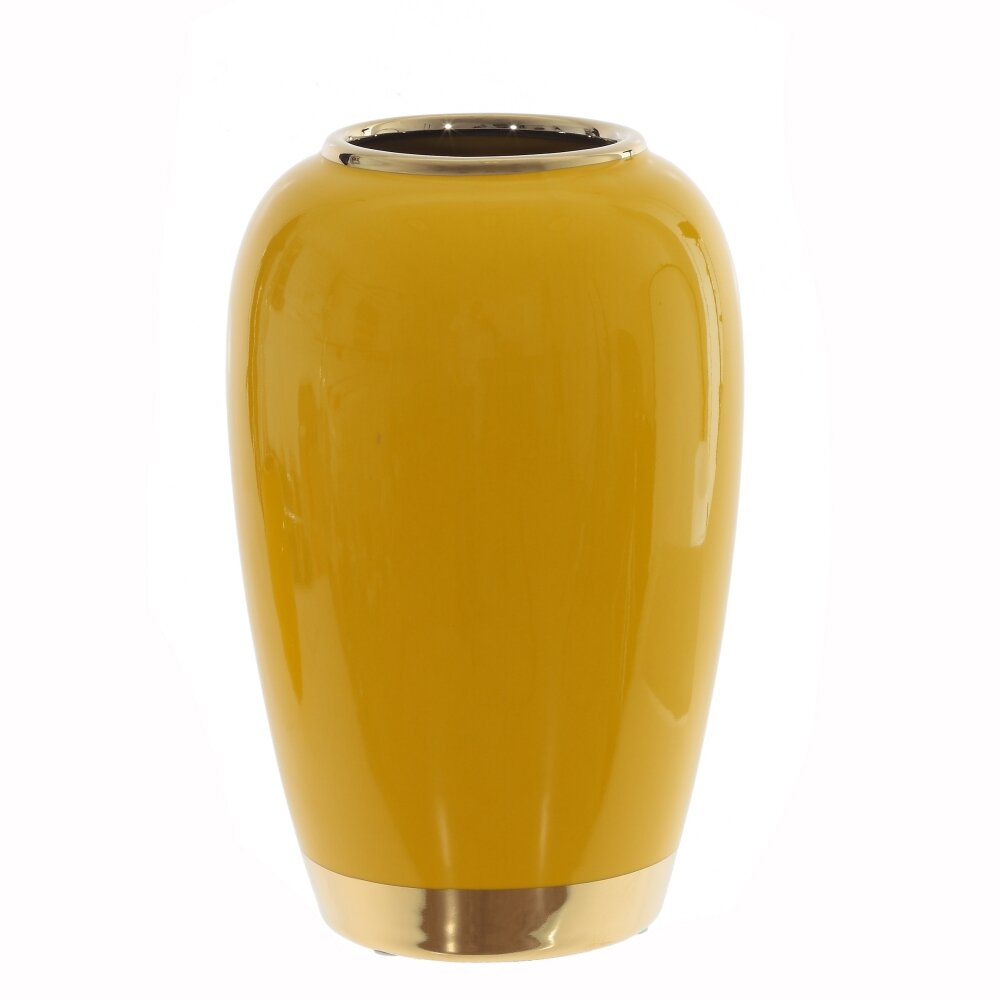 Эта элегантная ваза объемом 3000 мл выполнена из высококачественного фарфора, что делает ее не только прочной, но и изысканной деталью интерьера. Закругленная форма придает изделию стильный современный вид, а глянцевая поверхность добавляет роскоши. Яркий горчично-желтый цвет вазы делает ее выразительным акцентом, который гармонично впишется в различные стили интерьера — от классики до модерна. Дополнительную изысканность придает золотистая окантовка на горлышке, подчеркивающая утонченность дизайна. Ваза идеально подходит для живых и сухоцветов, а также может использоваться в качестве самостоятельного декоративного элемента. Независимо от назначения, она станет ярким украшением дома или офиса, добавляя уют и особый шарм в пространство.