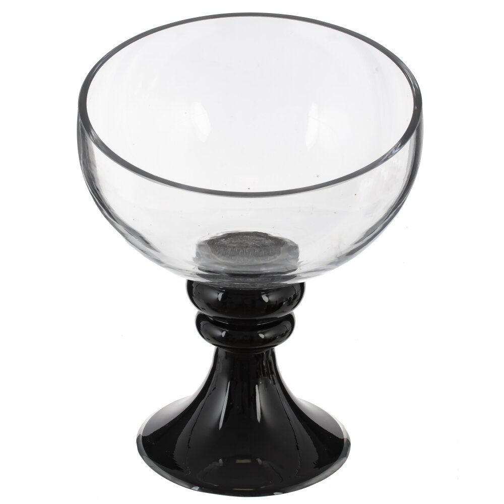 Стеклянная ваза на ножке, объем 900 мл. Прозрачная чаша с ровным, аккуратным краем подчеркивает содержимое, а глянцево черная ножка с широким основанием обеспечивает устойчивость на столе. Подходит для сервировки десертов, фруктов и конфет, а также для декоративных композиций из цветов, свечей, камней или сухоцветов. Лаконичный, но выразительный дизайн в стиле классического бокала легко вписывается в современный, минималистичный и винтажный интерьер, уместен дома, в кафе и на банкетах. Рекомендуется бережная ручная мойка без абразивов. Отличный вариант для подарка и ежедневного использования.
