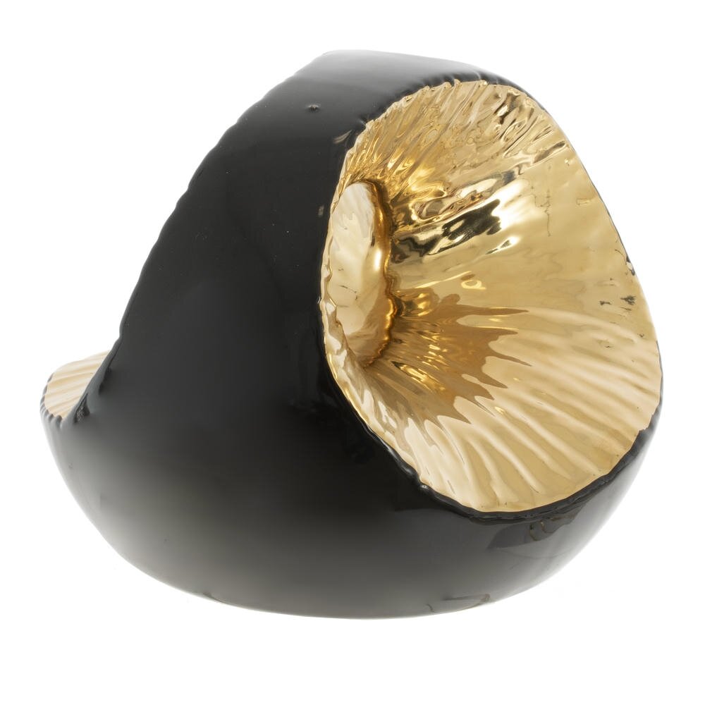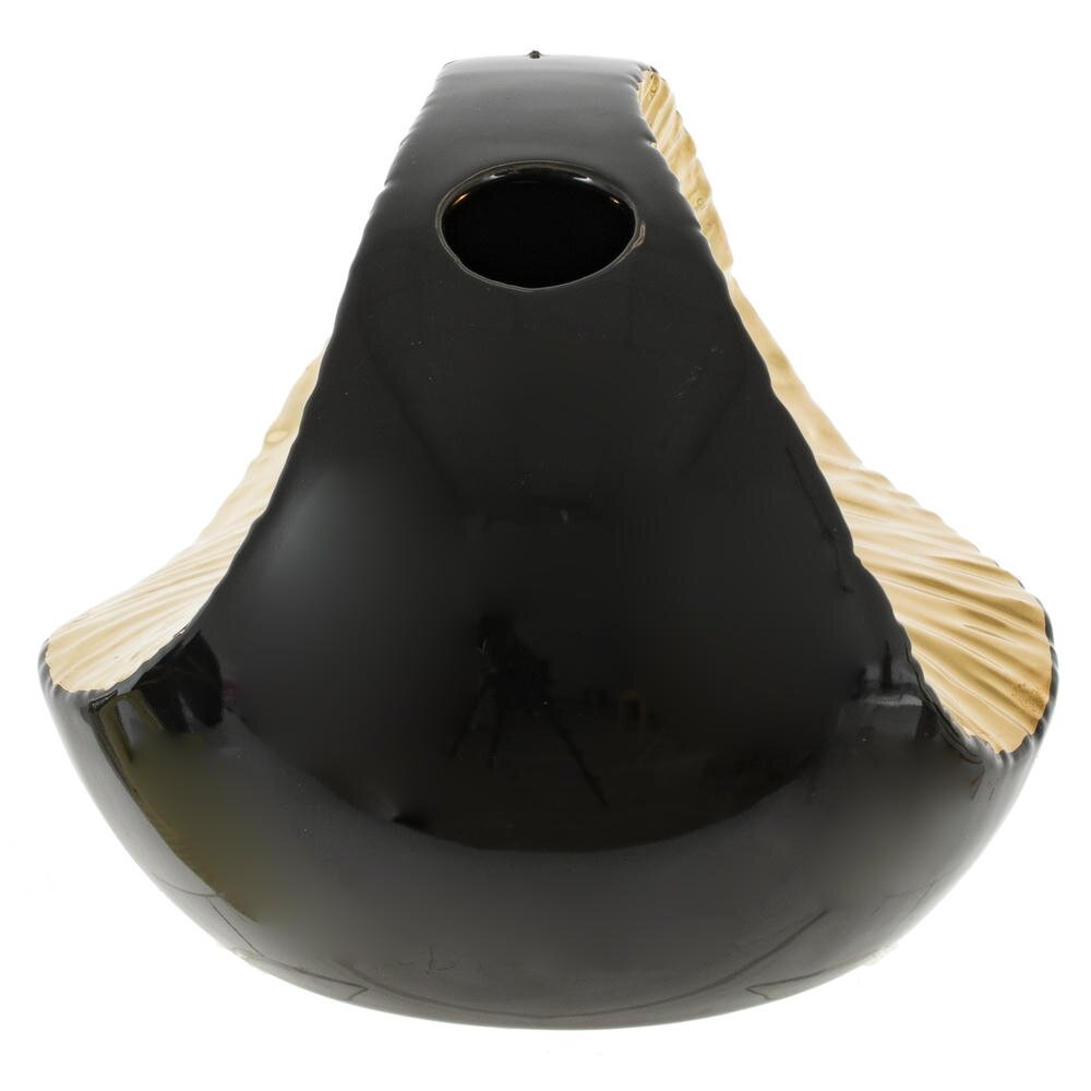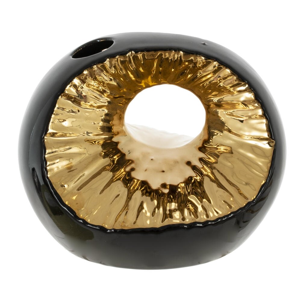Эта ваза из фарфора станет изысканным акцентом в любом интерьере. Её оригинальная округлая форма с отверстием не только привлекает внимание, но и предоставляет уникальные возможности для размещения цветов или декоративных элементов. Элегантный черный цвет гармонично сочетается с золотыми акцентами, придавая вазе шикарный и современный вид. Такая ваза отлично впишется как в минималистичный, так и в классический интерьер, добавляя нотку утонченности и стиля. Она станет великолепным дополнением к любому проекту по украшению пространства, будь то гостиная, столовая или спальня. Используйте её не только для живых цветов, но и как самостоятельный арт-объект, который подчеркнет вашу индивидуальность. Размер горловины: 3*3 см.