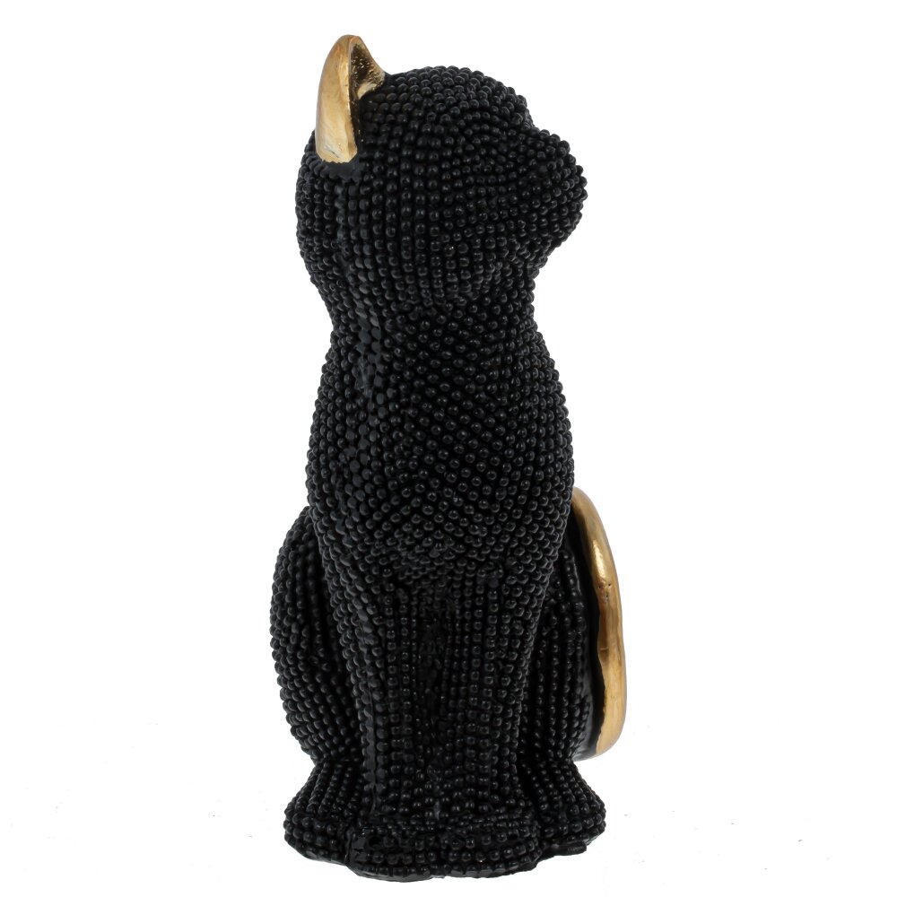 Декоративная фигурка «Кошка» выполнена из прочных полимерных материалов и станет выразительным акцентом в любом интерьере. Корпус черного цвета покрыт объемным рельефным узором из мелких шариков, создающих эффект россыпи бусин и красиво играющих при искусственном освещении. Изящный изгиб спины, поднятая голова и аккуратные лапки подчеркивают грациозный силуэт животного. Контрастные золотистые уши и хвост придают фигуре благородный, почти ювелирный вид и органично вписываются как в современный, так и в классический стиль оформления пространства. Фигурка идеально подходит для украшения гостиной, спальни, кабинета, полки с книгами или туалетного столика, а также станет оригинальным подарком ценителям кошек и стильных интерьерных аксессуаров.