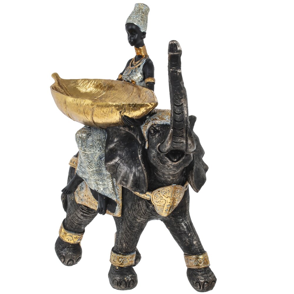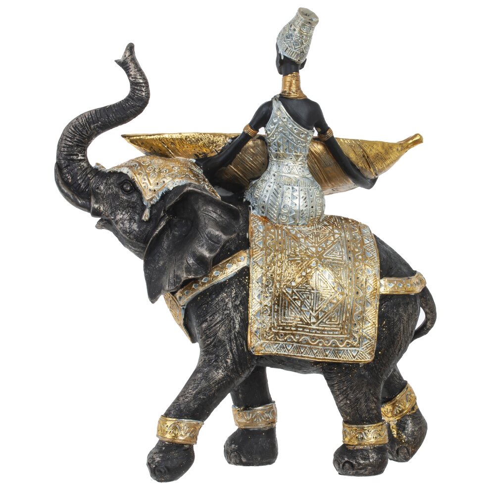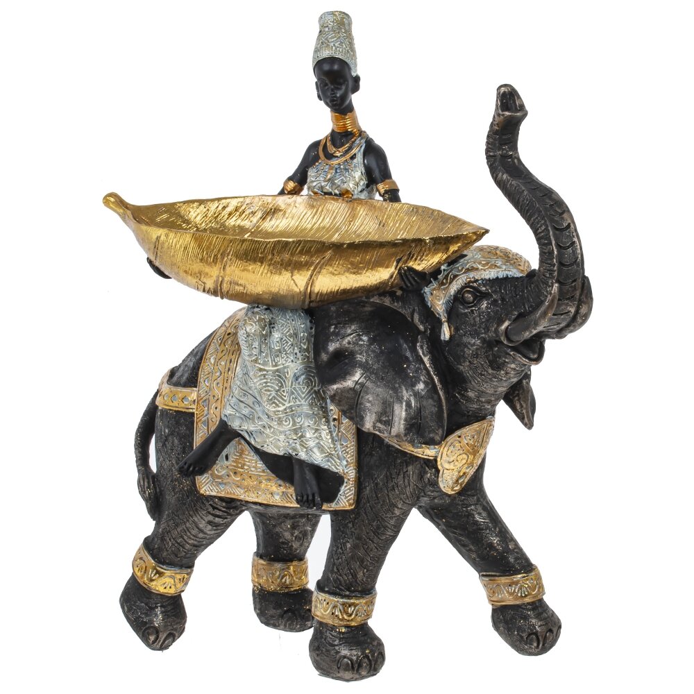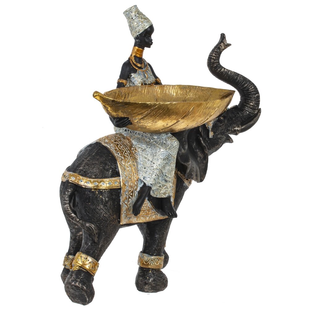 Фигурка африканки на слоне послужит стильным украшением для любой комнаты. Благодаря такому аксессуару можно создать эффектную композицию с находящимися вблизи предметами мебели или дополнительными элементами декора.