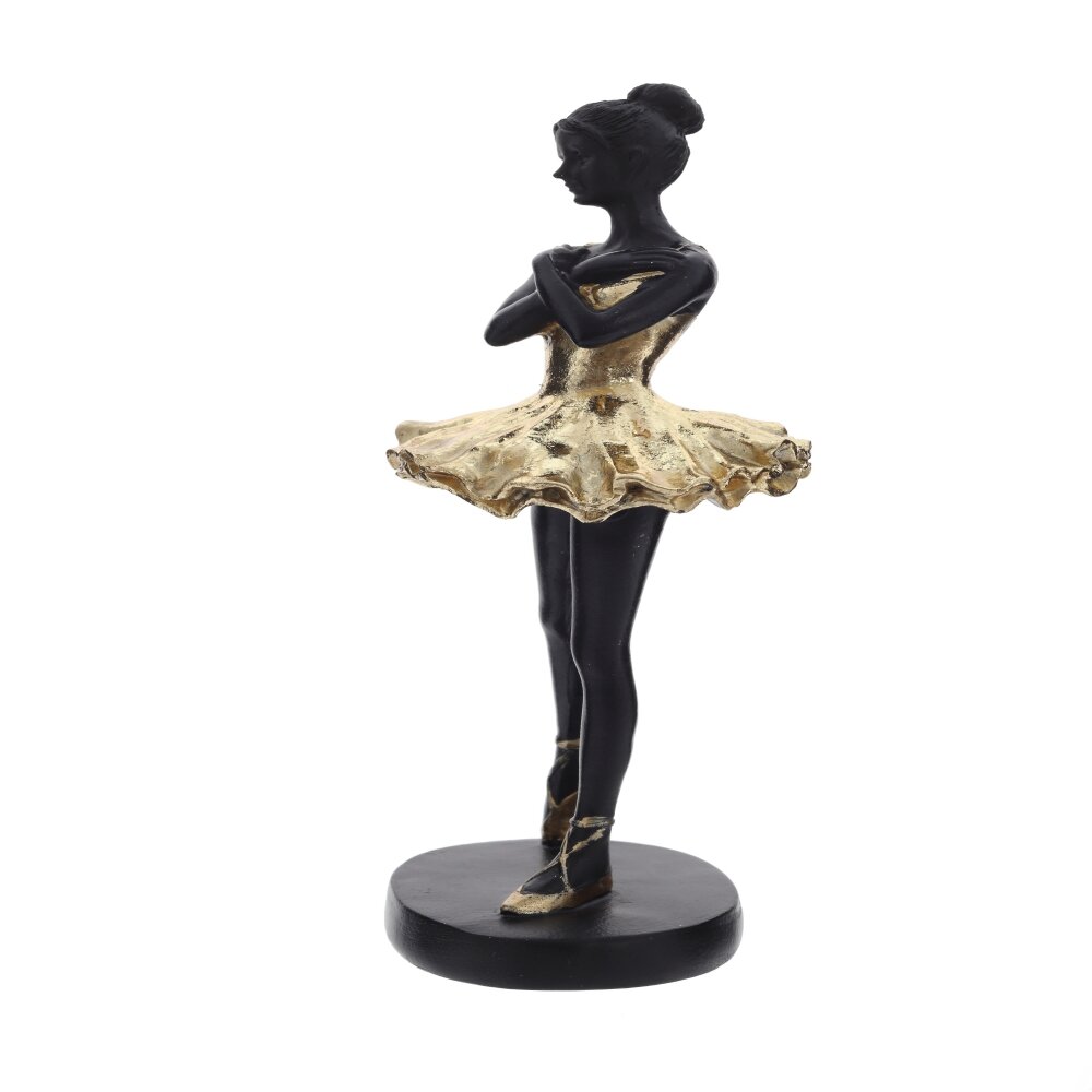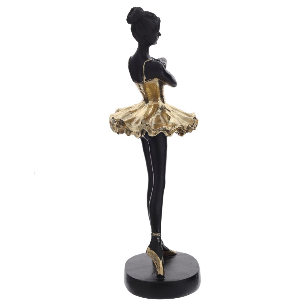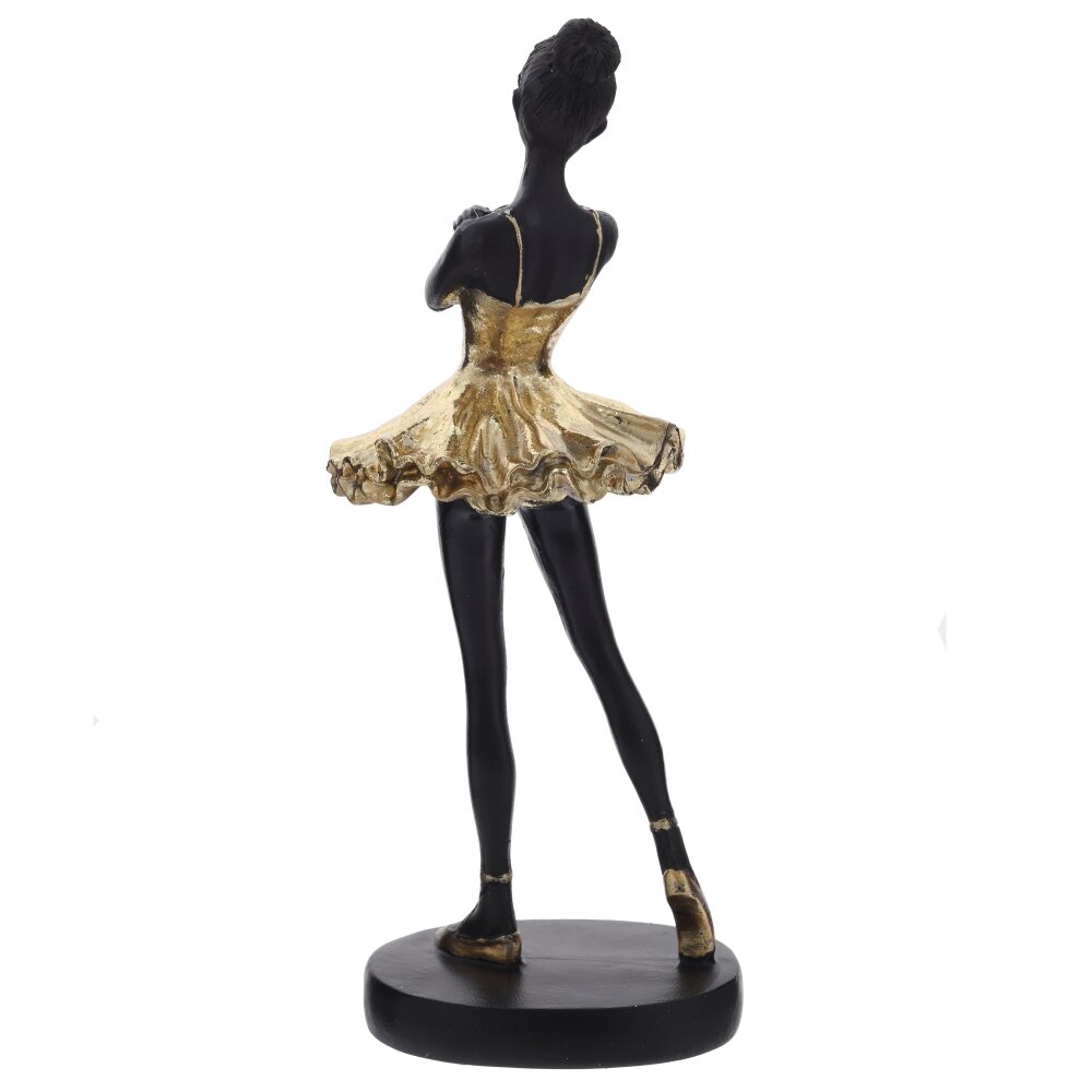 Декоративная фигурка «Балерина» – изящный акцент для любого интерьера. Статуэтка выполнена из прочных полимерных материалов и установлена на устойчивое круглое основание. Стройная балерина в характерной позе одета в эффектное золотистое платье-пачку и пуанты в тон, матовая темная поверхность фигуры выгодно подчеркивает блеск «металлического» наряда. Компактный размер позволяет разместить украшение на полке, журнальном столике, туалетном столике или в витрине. Подойдет в подарок любителям балета и тем, кто ценит стильный современный декор.