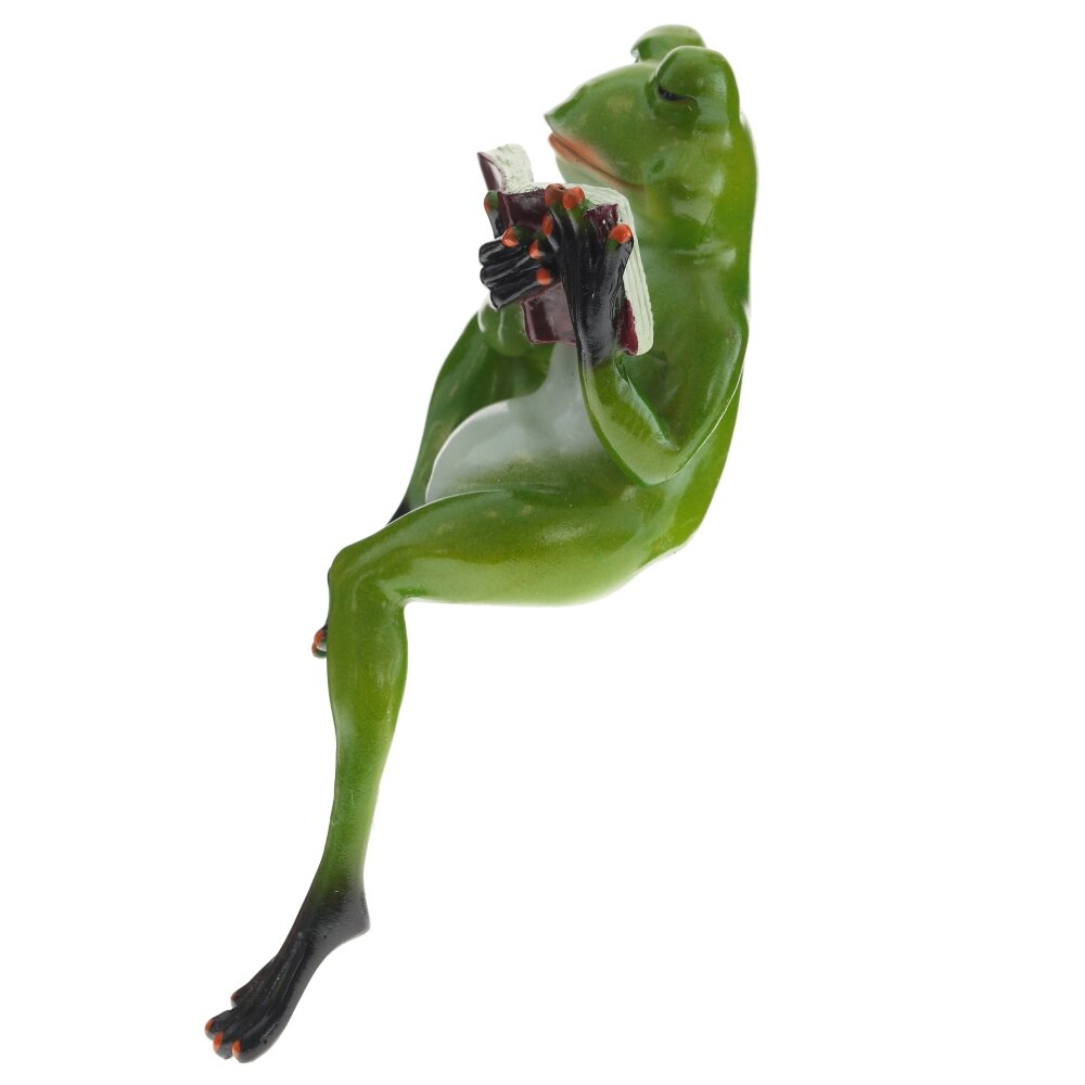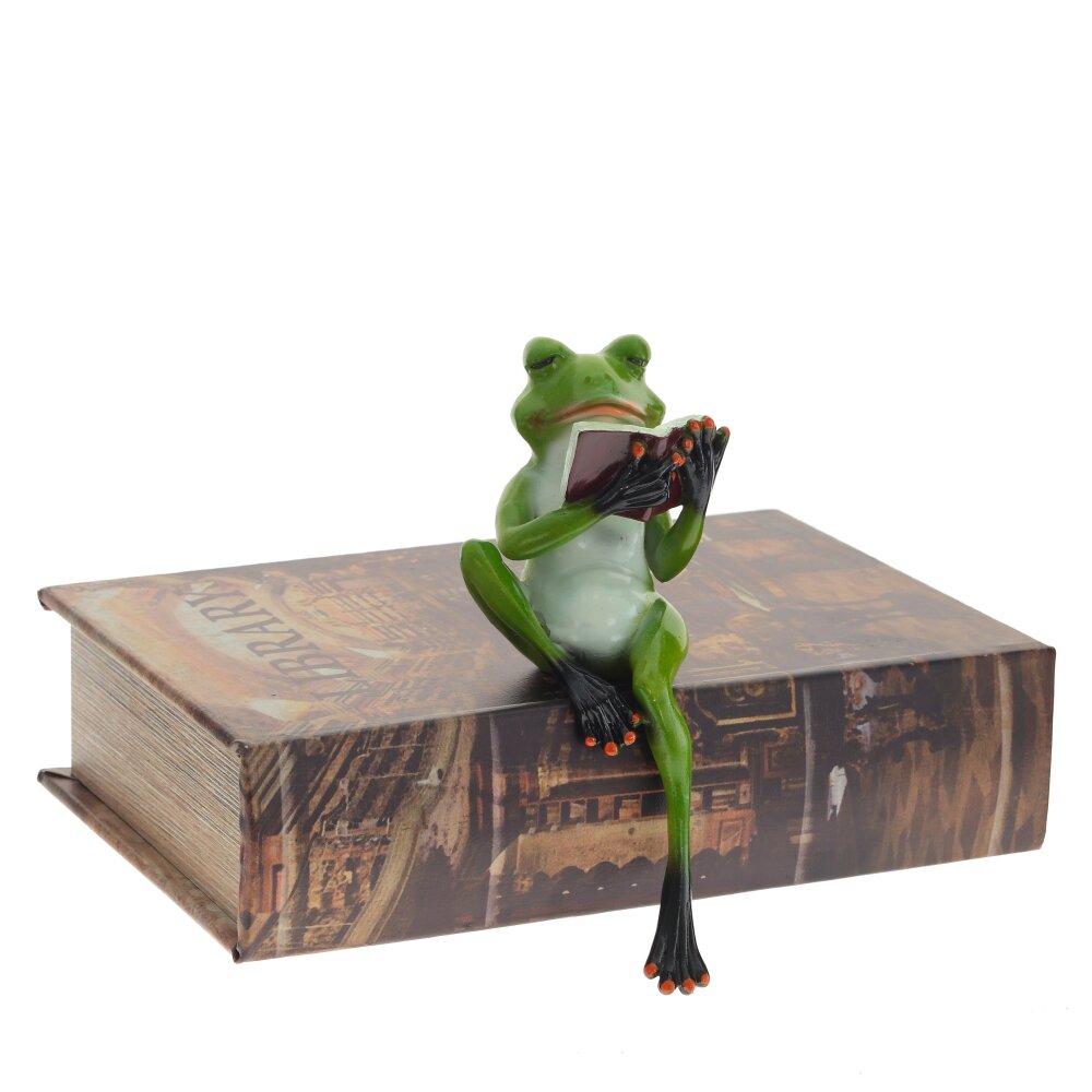 Декоративная фигурка «Лягушка» – оригинальный акцент для вашего интерьера. Забавная лягушка, увлечённо читающая книгу и свешивающая ножки с края полки или стола, создаёт уютную, чуть ироничную атмосферу. Изделие выполнено из прочных полимерных материалов с аккуратной прорисовкой деталей: плавные линии тела, контрастные лапки и яркая обложка книги. Фигурка прекрасно смотрится на книжной полке, прикроватной тумбе, рабочем столе или в детской. Идеально подойдёт в подарок любителям книг, необычных аксессуаров и коллекционерам декоративных фигур.