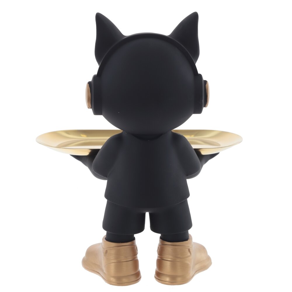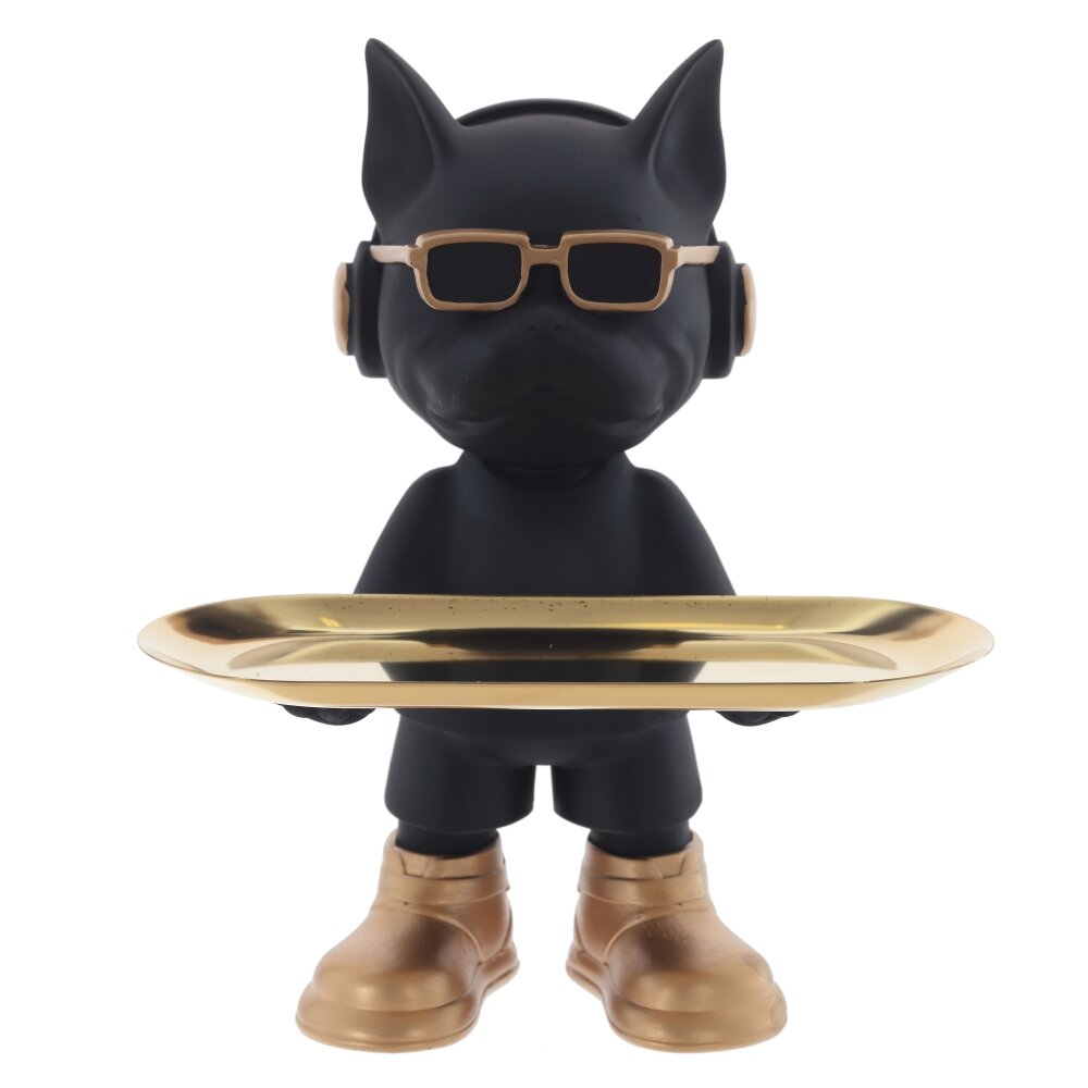 Изготовленный из качественных полимерных материалов, этот черный бульдог-меломан с очками на глазах и наушниками на голове выглядит особенно харизматично и современно. Он умело удерживает в своих лапах стильный золотой поднос, который можно использовать для маленьких угощений или в качестве подставки под мелкие предметы. Эта фигурка станет не только ярким акцентом в вашем доме и забавным подарком для друзей и близких. Очарование милого бульдога и его музыкальные аксессуары перенесут вас в мир, где царит дружба, творчество и комфорт. Поставьте его на рабочий стол, в гостиной или на кухне — и он непременно привлечет взгляды и вызовет улыбки. Не упустите возможность добавить этот уникальный предмет в свою коллекцию.