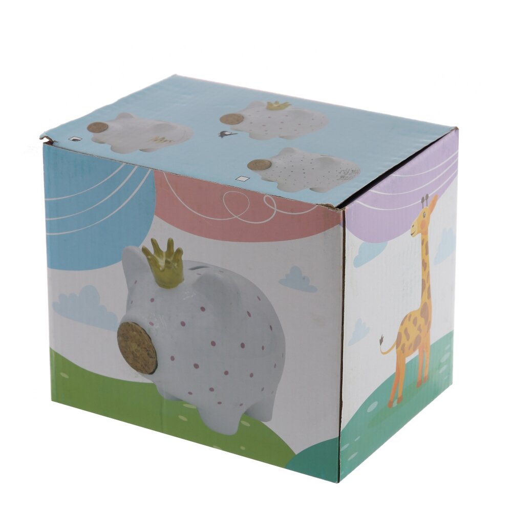 Очаровательная свинка поднимает настроение и мотивирует откладывать деньги с удовольствием. Благодаря компактным размерам копилка легко разместится на полке, столе или тумбе и станет уютным акцентом в комнате.