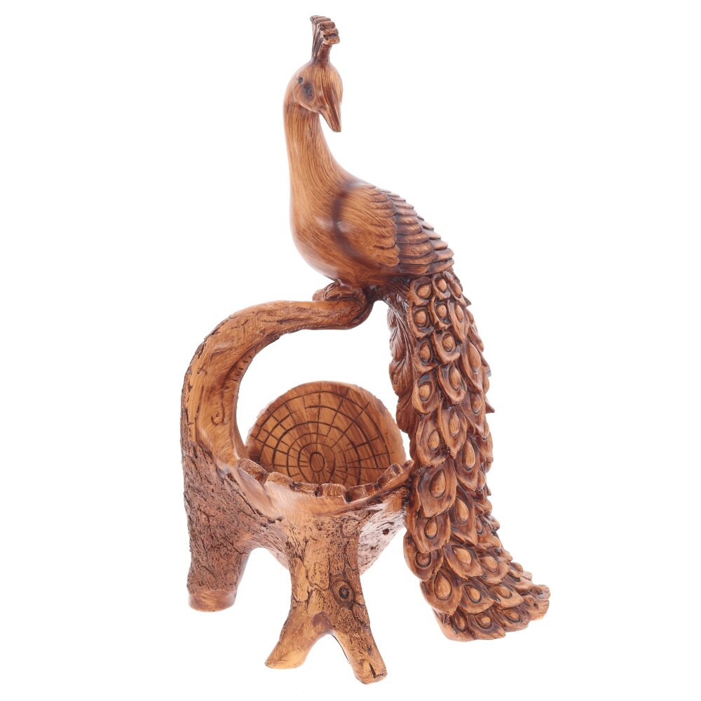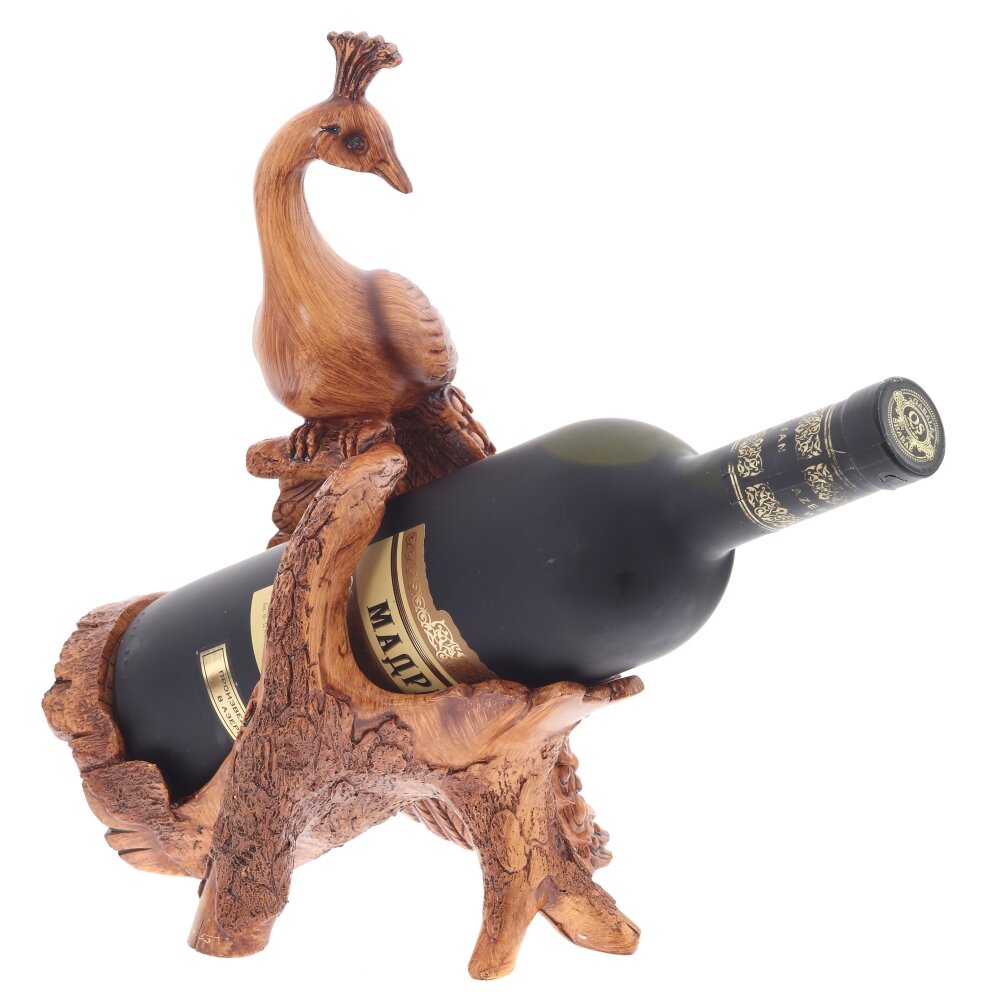 Элегантная подставка для бутылки в виде павлина станет эффектным акцентом вашего стола или домашнего бара. Изделие выполнено из качественных полимерных материалов, имитирующих фактуру натурального дерева с детальной проработкой коры, перьев и плавных линий птицы. Конструкция надёжно удерживает бутылку вина, шампанского или других напитков стандартного размера, подчёркивая их подачу. Подставка устойчива, легко очищается от пыли, не боится влаги и механических воздействий. Такой аксессуар подойдёт для сервировки праздничного стола, оформления интерьера в классическом или этническом стиле, а также станет оригинальным подарком ценителям необычного декора и красивой посуды.