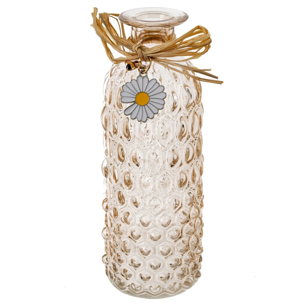 Настольная ваза в форме бутылки станет настоящим акцентом вашего интерьера, привнося в него характер и стиль. Изготовленная из полупрозрачного бежевого стекла, она мягко рассеивает свет, создавая уютную атмосферу в любом помещении. Декоративный шнурок, завязанный симпатичным бантиком на горлышке, в сочетании с милой подвеской в форме цветка с пчелой делают этот предмет уникальным и запоминающимся. Вы можете использовать вазу не только для свежих цветов, но и для создания оригинальных сухих букетов, добавляя сезонные акценты и радуя глаз в любое время года. Ваза прекрасно будет смотреться на полке или кофейном столике, добавляя изюминку в ваш интерьер. Она привлечет внимание и станет обсуждаемым элементом, вызывая интерес у гостей. Этим изделием можно подчеркнуть как современный, так и классический стиль интерьера. Диаметр горловины: 1.5 см.