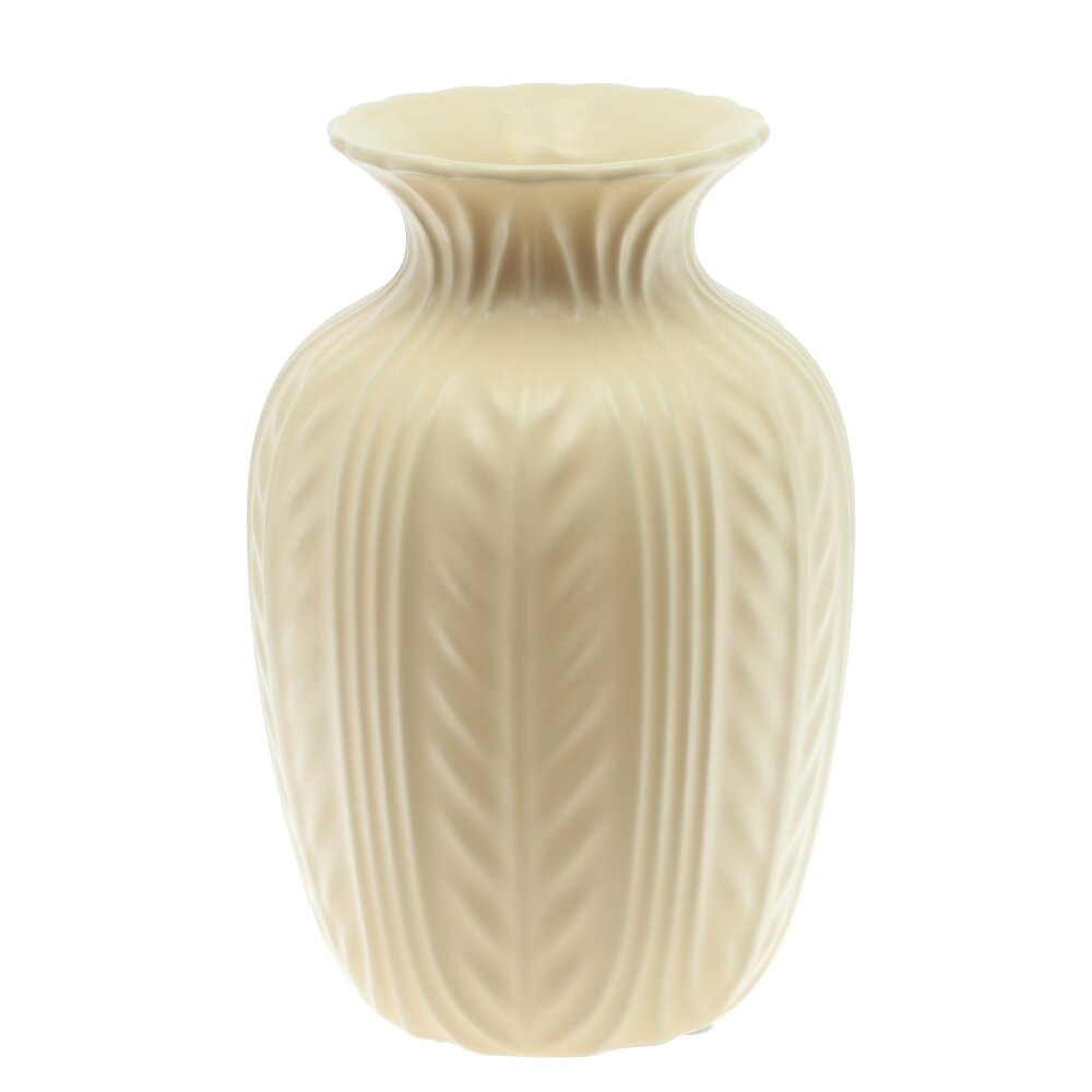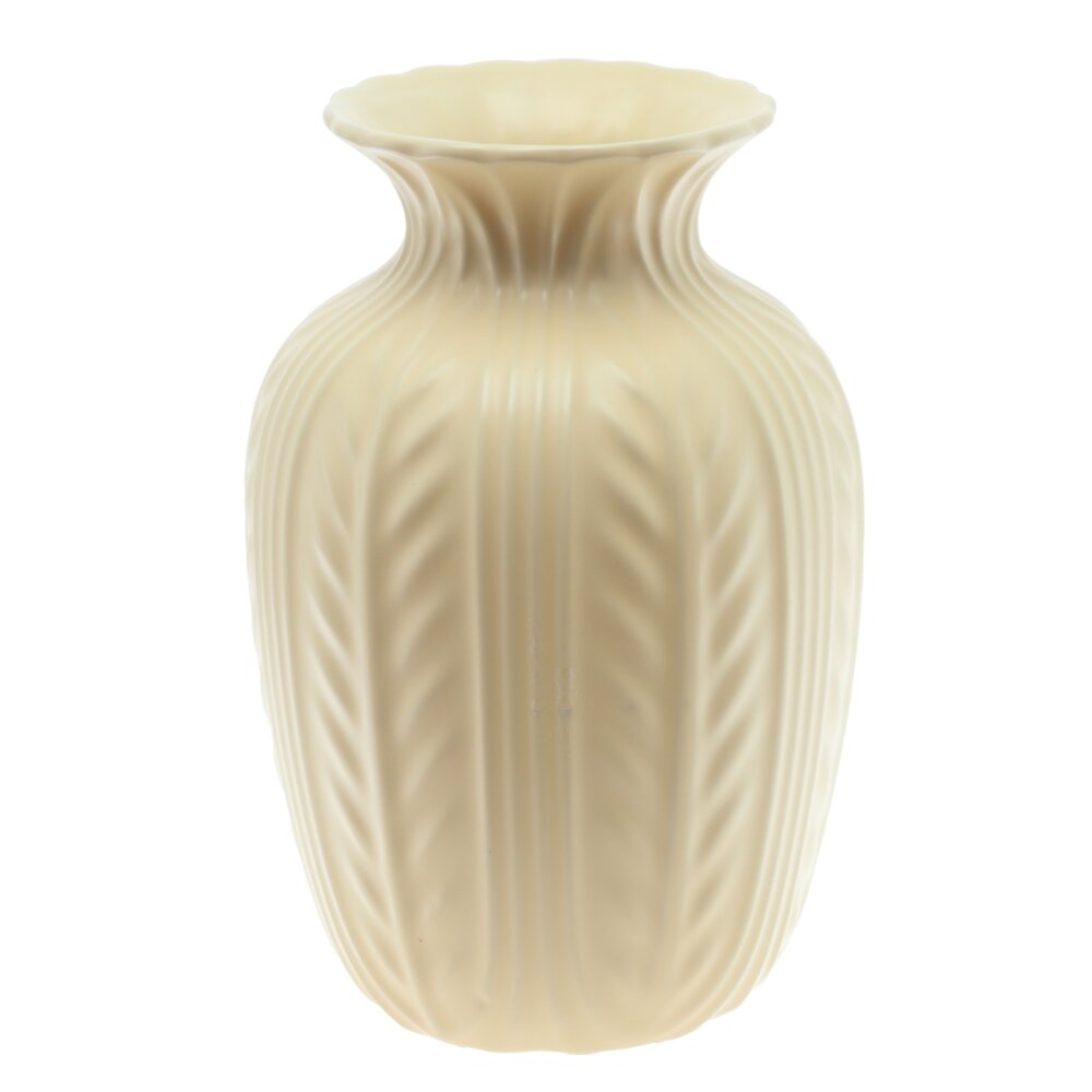 Эта изысканная фарфоровая ваза объемом 2650 мл станет прекрасным дополнением интерьера, придав ему элегантности и утонченности. Ее светлый оттенок гармонично впишется в классические и современные стили оформления. Ваза имеет рельефную поверхность с изящным орнаментом в виде продольных линий и листьев, что делает ее по-настоящему уникальным элементом декора. Широкое горлышко позволяет размещать в ней как пышные букеты, так и лаконичные композиции из сухоцветов. Благодаря использованию высококачественного фарфора, ваза отличается прочностью и долговечностью. Это идеальный выбор для украшения дома, офиса или в качестве подарка для ценителей стильных интерьерных аксессуаров. Диаметр горловины: 6 см.