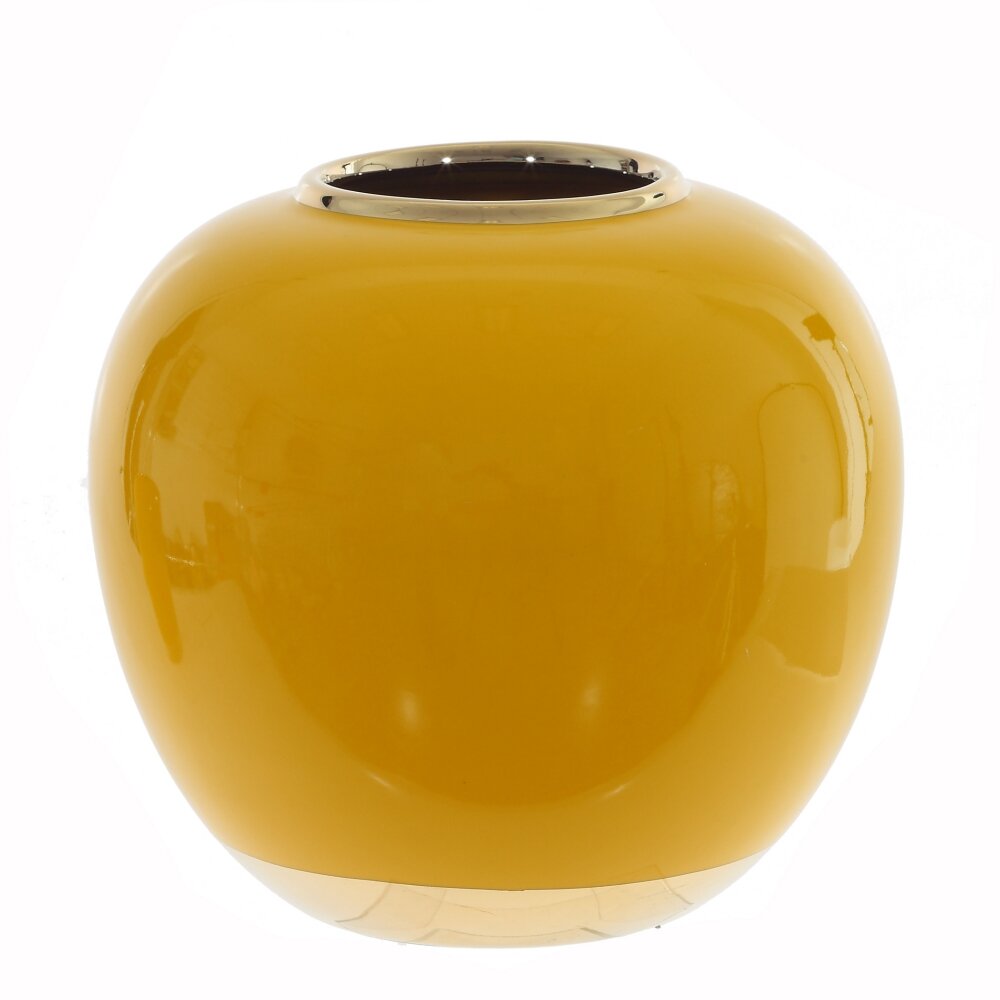 Эта элегантная ваза объемом 3300 мл выполнена из высококачественного фарфора, что делает ее не только прочной, но и изысканной деталью интерьера. Закругленная форма придает изделию стильный современный вид, а глянцевая поверхность добавляет роскоши. Яркий горчично-желтый цвет вазы делает ее выразительным акцентом, который гармонично впишется в различные стили интерьера — от классики до модерна. Дополнительную изысканность придает золотистая окантовка на горлышке, подчеркивающая утонченность дизайна. Ваза идеально подходит для живых и сухоцветов, а также может использоваться в качестве самостоятельного декоративного элемента. Независимо от назначения, она станет ярким украшением дома или офиса, добавляя уют и особый шарм в пространство. Диаметр горловины: 8 см.