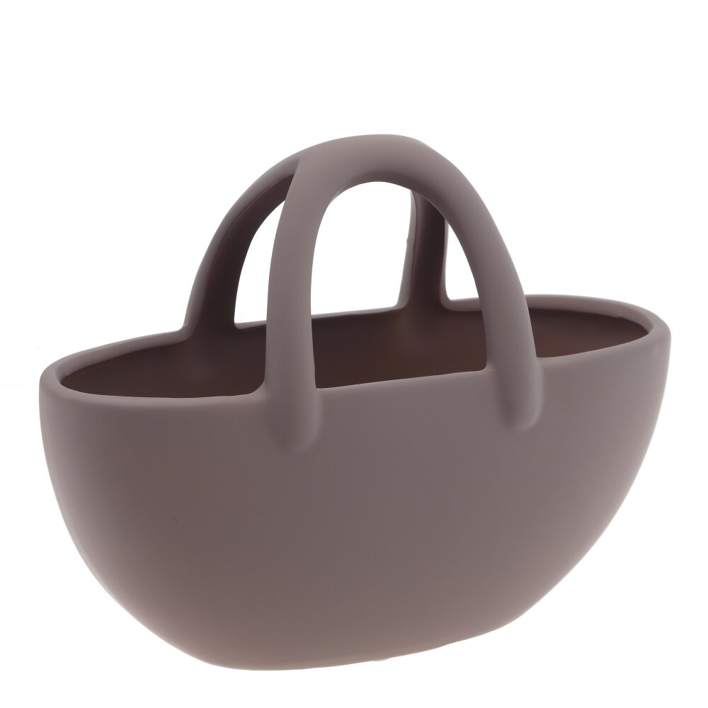 Эта стильная ваза для искусственных цветов изготовлена из высококачественного фарфора и имеет объем 1250 мл. Ее оригинальная форма в виде небольшой сумки придает интерьеру изысканный и современный вид. Матовая поверхность создает приятную текстуру, а универсальный цвет позволяет вазе гармонично вписаться в любое пространство — будь то гостиная, спальня или офис. Дизайн аксессуара совмещает практичность и декоративность, позволяя использовать его для оформления интерьера в минималистичном или современном стиле. Отличный выбор для декора! Размер горловины: 21*6.5 см.